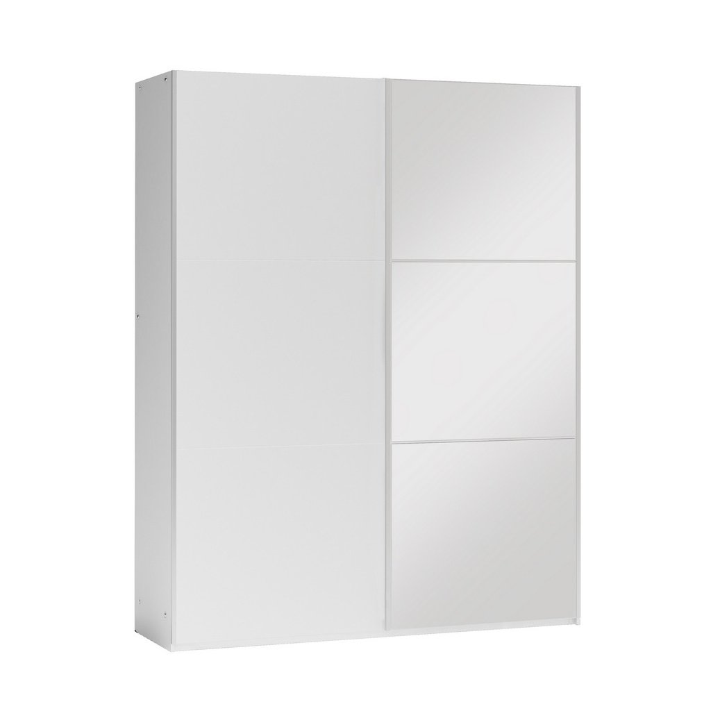 Šatní skříň 151 cm s posuvnými dveřmi v bílé barvě se zrcadlem a bílým korpusem KN1106