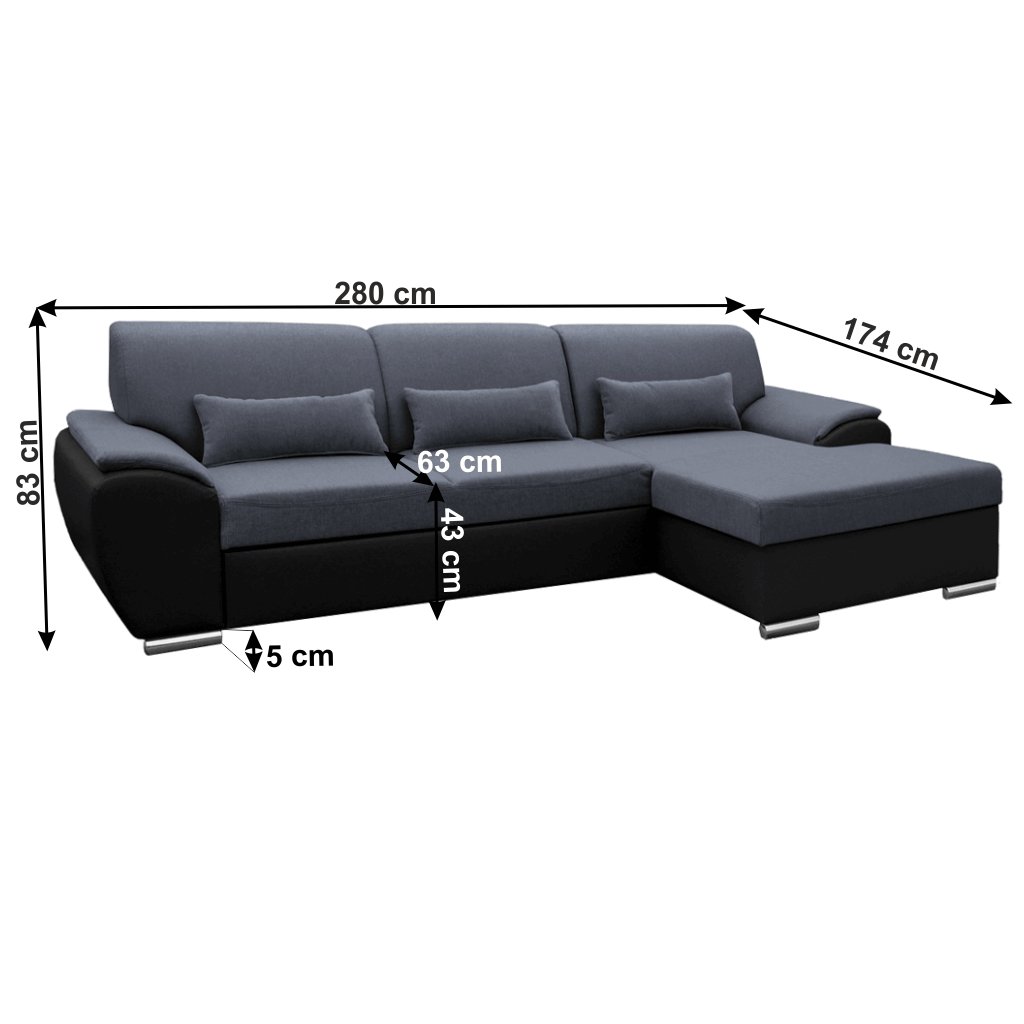 325;217;106;Sedací souprava barva černá a šedá materiál kov a látka a čalounění potah látka a ekokůže rozkládací do U s úložným prostorem levý roh.