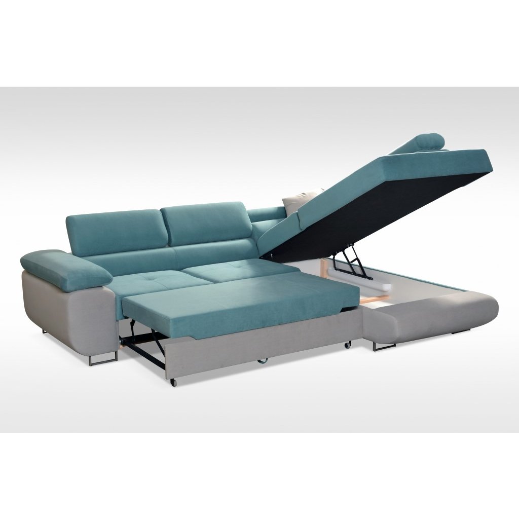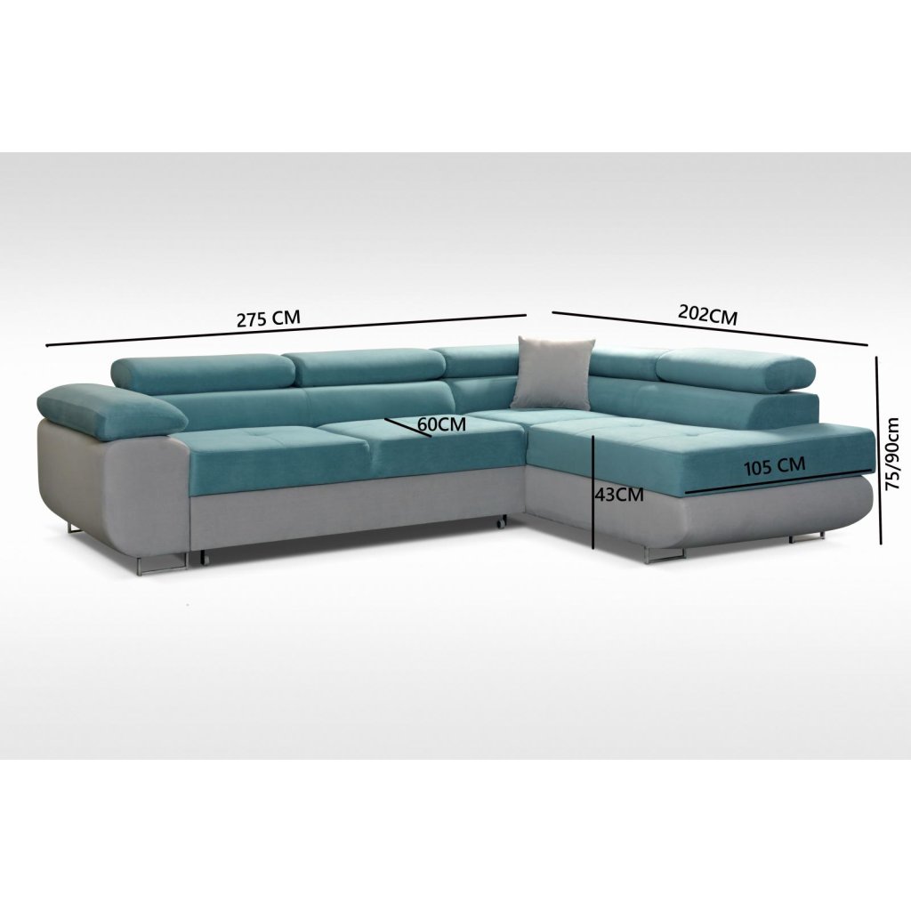 Oblíbená sedací souprava je velmi pohodlná, praktická a především nabízí dostatek místa k sezení. Sedačka se stane oblíbeným centrem odpočinku, nebo setkání s rodinou a přáteli. Praktickou stránku zajišťuje možnost rozložení k občasnému přespání. Úložný prostor je možné využít např. na peřiny. Pohodlnost je zajištěna kombinací pružin s kvalitní PUR pěnou. Při odpočinku, nebo sledování televize vám zvýší pohodlí polohovací opěrky. Na fotografii můžete vidět sedací soupravu v šedé barvě v levém provedení. Sedačku nabízíme ještě v pravém provedení.