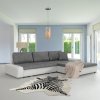 Sedací souprava barva bílá a šedá materiál ekokůže a látka a čalounění potah látka a ekokůže rozkládací rohová s úložným prostorem univerzální roh.
