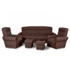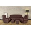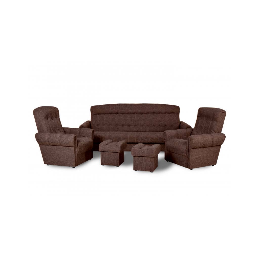 Sedací souprava SIMONA v provedení 3+1+1+2T, čalouněná hnědou látkou, v klasickém stylu. Sedačka zaujme kromě jiného i svojí praktičností. Díky možnosti rozložení, pomocí systému klik-klak vznikne lůžko pro občasné přespání, o velikosti 120x188 cm. Součástí je také praktický úložný prostor, který si své využití také najde. Souprava obsahuje dvě křesla a dva taburety. Součástí taburetů je také úložný prostor.