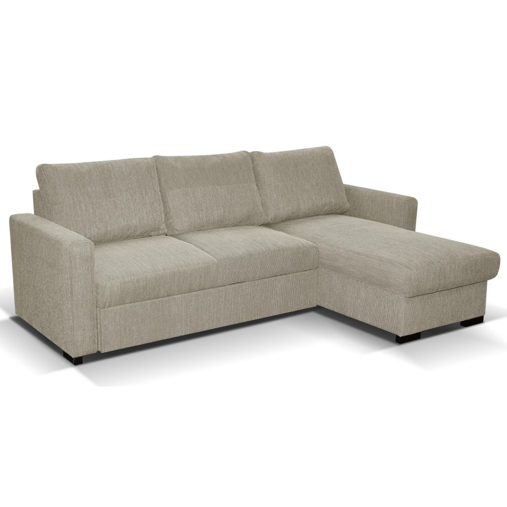 Univerzální sedačka, kterou lze sestavit jako pravou nebo levou, což je výhoda při sestavování pokoje, protože nemusíte přemýšlet do jakého rohu ji postavíte. Rozložit se dá jednoduše pomocí automatu a nechybí jí ani úložný prostor. Pohodlí při sezení zajišťuje kombinace pružin faliste s kvalitní PUR pěnou a velké opěrné polštáře, které jsou odnímatelné, takže si je můžete přizpůsobit svým potřebám. Je potažena kvalitním úpletem v béžové barvě. V ceně jsou 3 velké opěrné polštáře. Nabízíme ji v několika barvách.