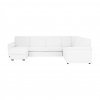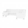 Sedací souprava barva bílá potah ekokůže rozkládací moderní styl rohová do U s úložným prostorem levý roh.