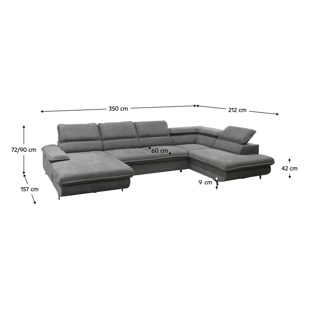 Sedací souprava ve tvaru U, šedá, pravá, MANTY U