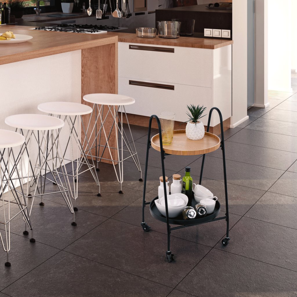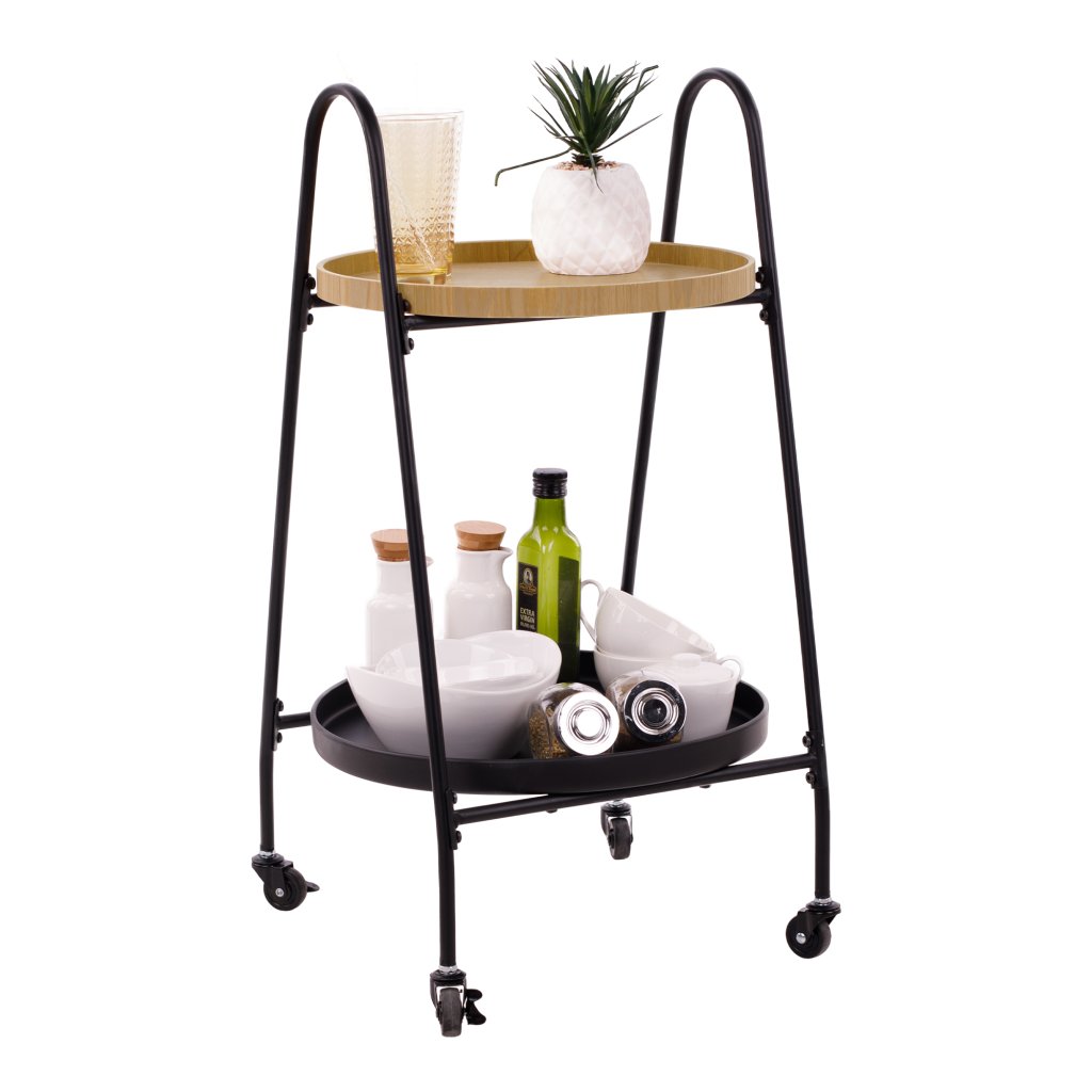 Servírovací vozík, dub / černá, GUJA