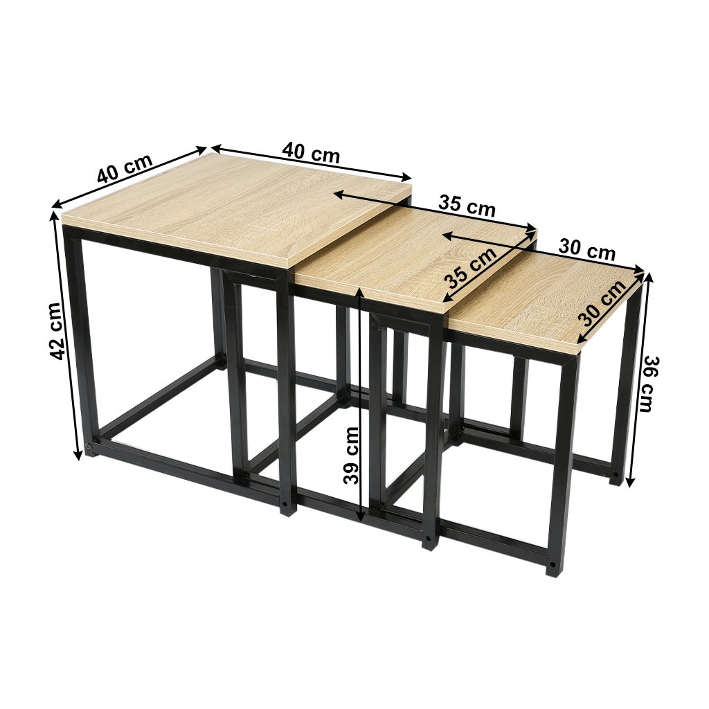 Set 3 konferenčních stolků, dub sonoma / černá, KASTLER NEW TYP 3