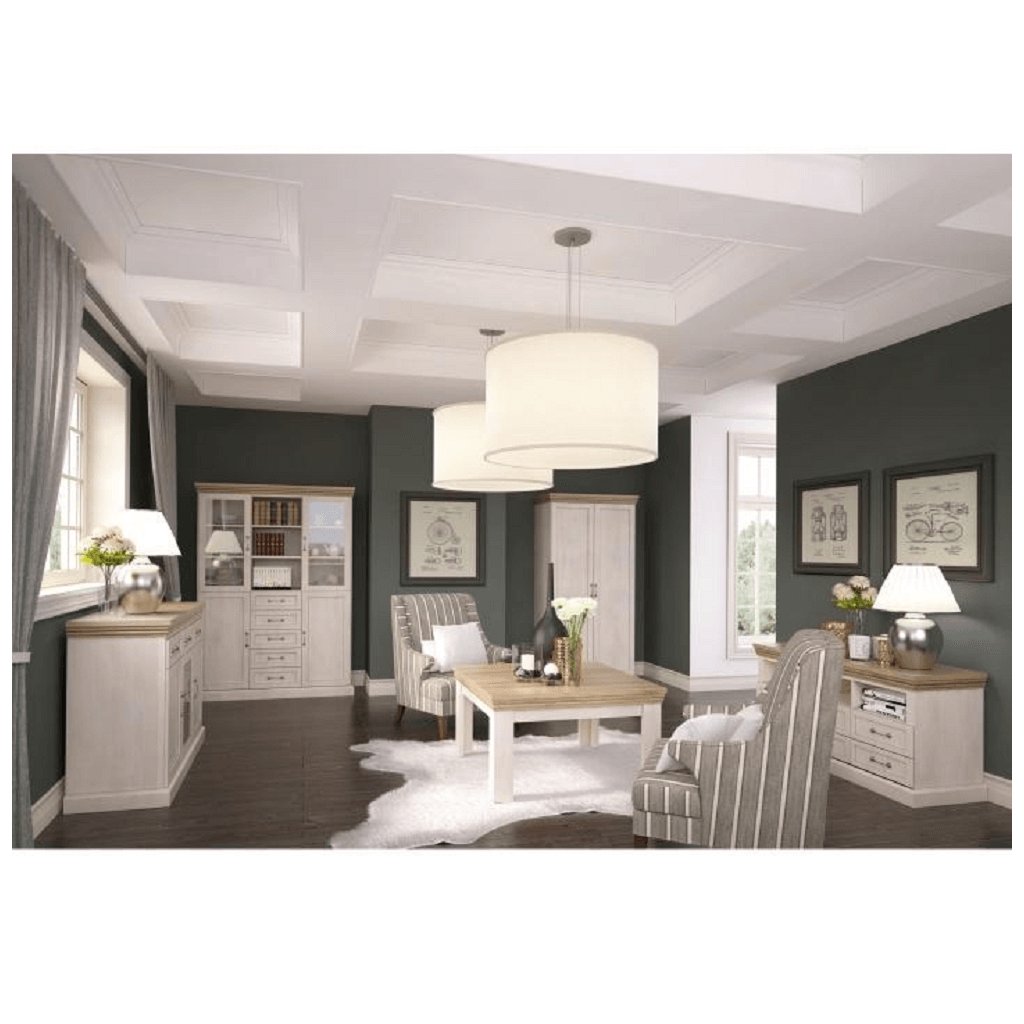 Šatní skříň je v elegantním anglickém stylu. Celkově nábytek působí světlým a uklidňujícím dojmem. Celá kolekce je v čistých liniích, které jsou moderním trendem v současné výrobě nábytku.