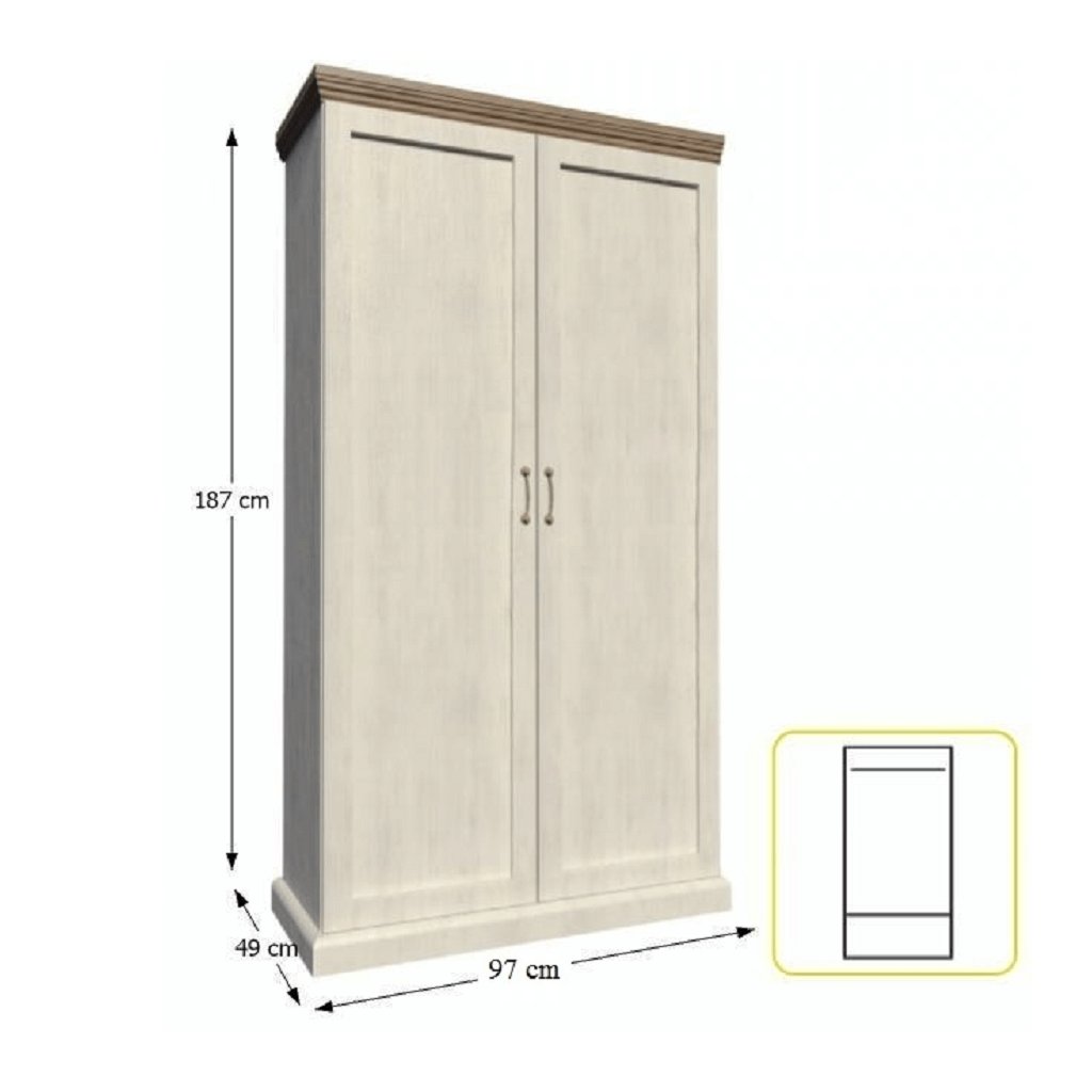 Šatní skříň klasická dvoudveřová věšáková nordická bílá borovice ROYAL S2D