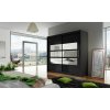 Skříň s posuvnými dveřmi v černé barvě s malými zrcadly se hodí do každého interiéru. Je vyrobena z kvalitního lamina, které je odolné vůči poškrábání a vlhkosti, hrany jsou ukončeny ABS lištou. Vodící lišty jsou vyrobeny z odolného hliníku, tudíž splňují požadavky pro každodenní užívání. Zrcadla, která jsou připevněna na skříni jí dodáváji elegantní vzhled a zároveň prosvětlí a opticky zvětší místnost. Skříň poskytuje dostatek úložného prostoru a díky posuvným dveřím ušetří místo. Skříň je dodávána v demontu. Pokud by se Vám toto provedení nehodilo, dodáváme i v jiných barvách, nebo v provedení bez zrcadla.