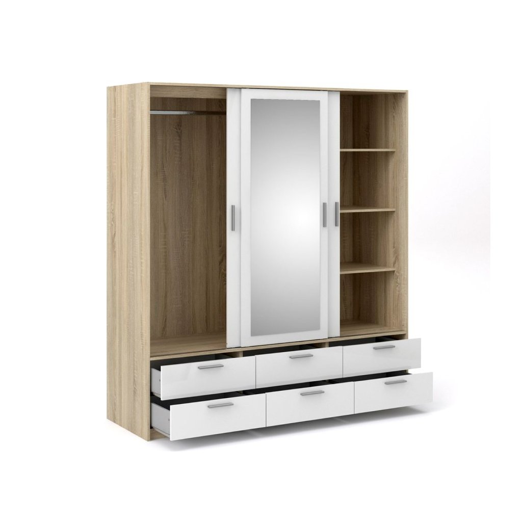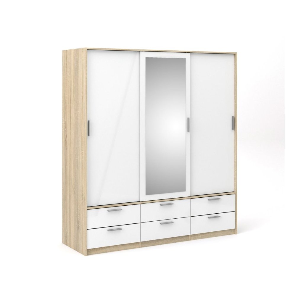Šatní skříň Lincoln s posuvnými dveřmi nabízí dostatek úložného prostoru a univerzální vyuužití. Výborně se hodí např. do ložnice, do dětského i studentského pokoje, ale i do pracovny či předsíně. Skříň je vyrobená v jednoduchém a nadčasovém skandinávském stylu. Má rovné a čisté linie, které vytvoří útulný, pohodový a příjemný interiér. Vnitřní vybavení skříně je vyobrazeno v doplňkových fotografiích. Skříň je také vybavena praktickými zásuvkami, které můžete využít např.na spodní prádlo. Je dodávaná v demontu. Součástí balení je montážní návod včetně všech spojovacích prvků. Vyobrazené dekorace nejsou v ceně.