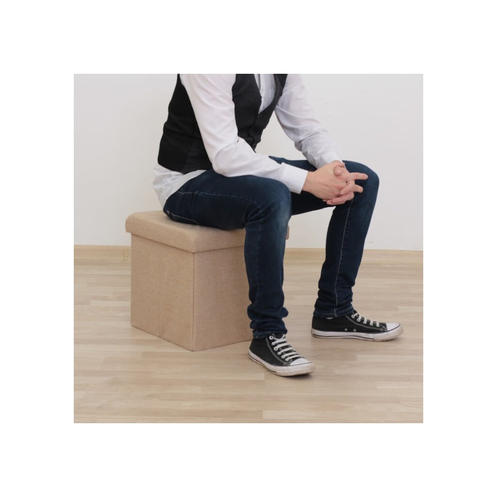 Potřebujete usadit vaši návštěvu? Chybí vám konferenční či servírovací stolek, který poslouží k podávání malého občerstvení? A co řeknete na podnož pod nohy pro maximální komfort během vašeho odpočinku? Představujeme vám multifunkčního pomocníka, naši skládací taburetku. Objevte kouzlo taburetu, který si získá vaši pozornost i srdce. Malý, milý, všestranný služebník vyrobený v béžové látce se zdobným prošitím. Ukrývá v sobě úložný prostor, do kterého odložíte knihy, časopisy, deky či cokoliv jiného. Podlehněte kouzlu tohoto taburetu a pořiďte si jeden i vy. Ve fotografii pod produktem najdete i detailní rozměry. Odnímatelné víko. Nosnost 100 kg. Dodávané v demontu.