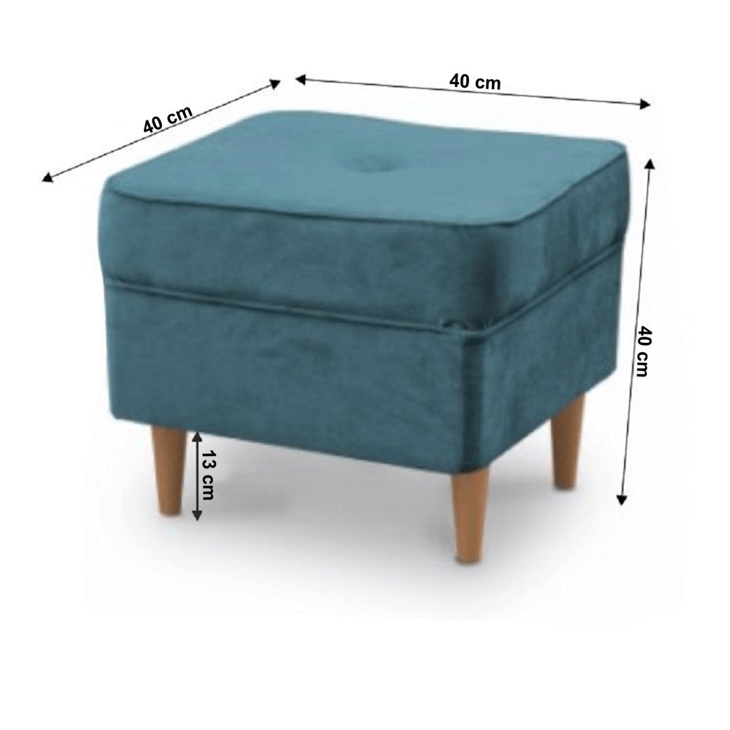 Moderní taburet TTA100PE Materiál: látka Trinity / dřevo Oděruodolnost textilie podle testu Martindale: 55 000 oděrek Barva: petrolejová / buk Rozměry: (ŠxHxV): 40x40x40 cm Výška spodního prostoru od podlahy: 13 cm