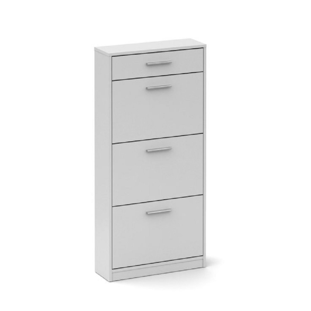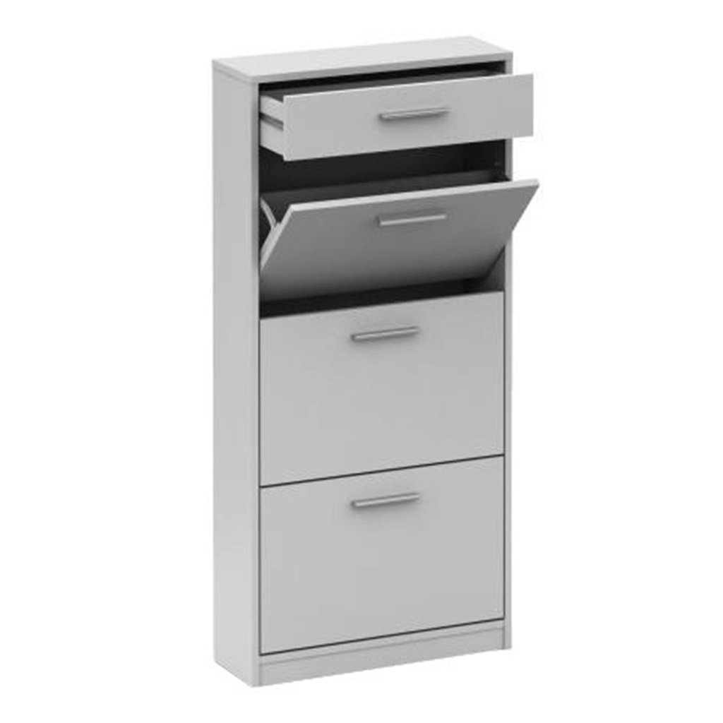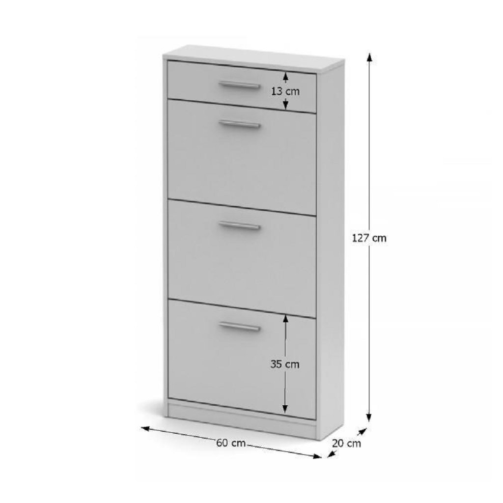 Třířadý výklopný botník v jednoduchém moderním provedení skvěle doplní každý trendy interiér předsíně. Součástí jsou tři výklopné skříňky, do kterých se vejde dostatek bot. Botník obsahuje také jednu zásuvku, kterou lze využít pro úschovu různých drobností.
