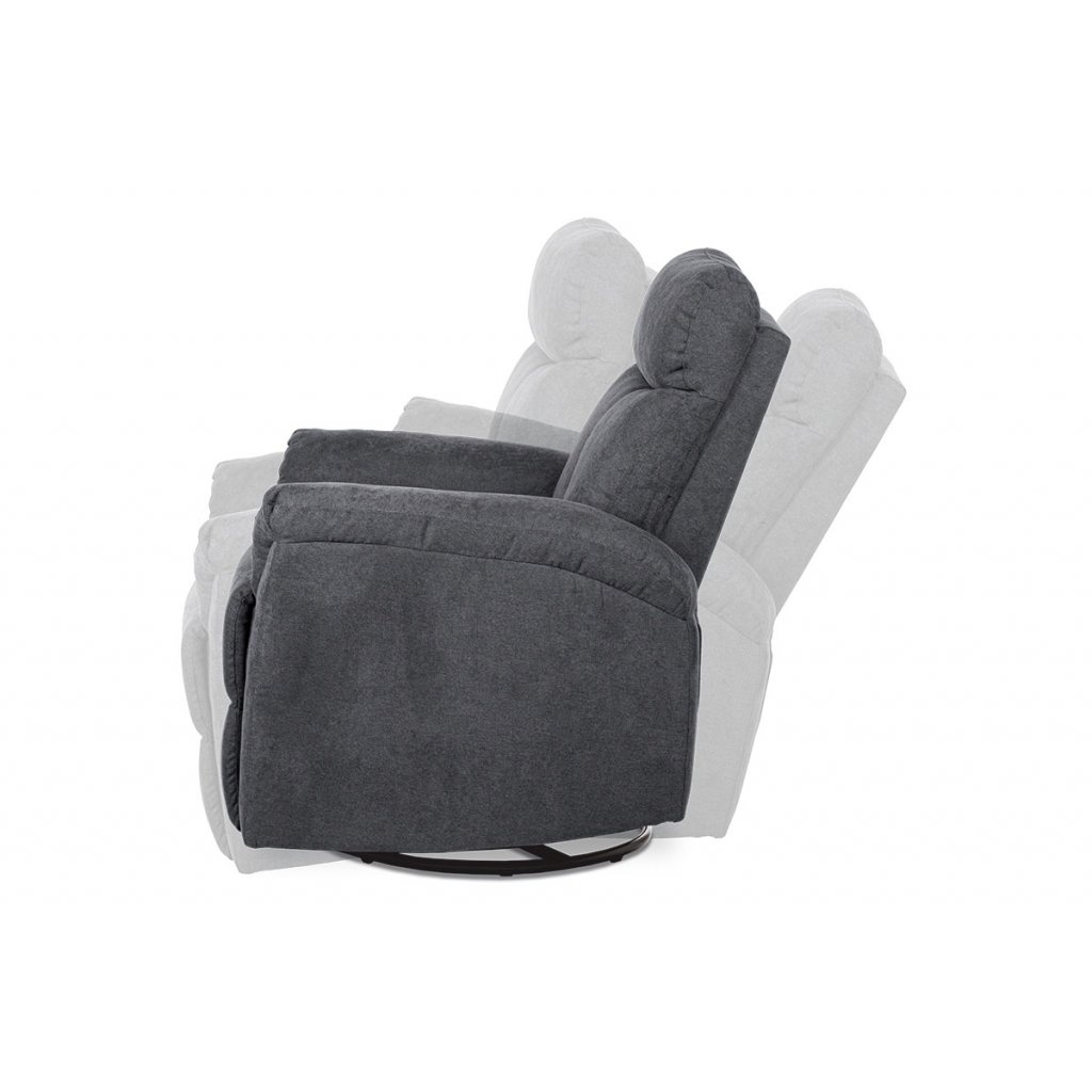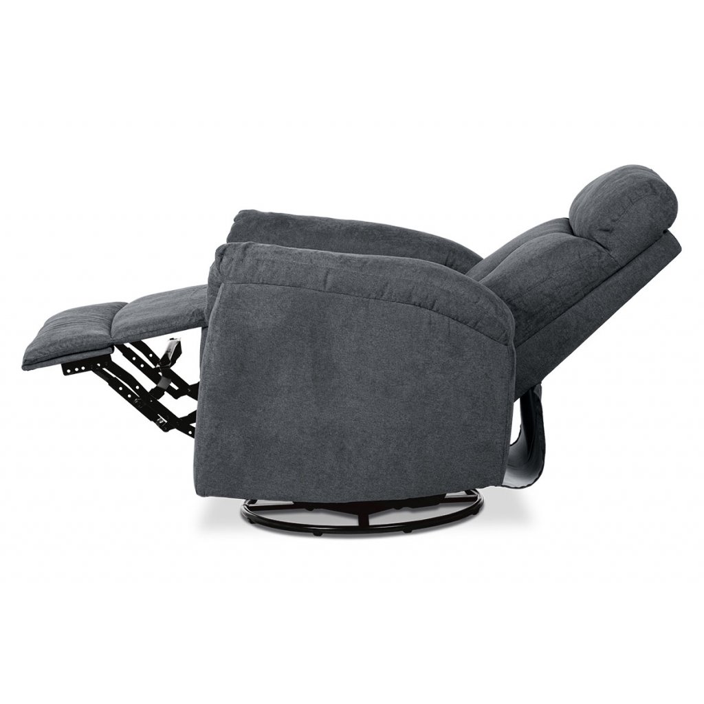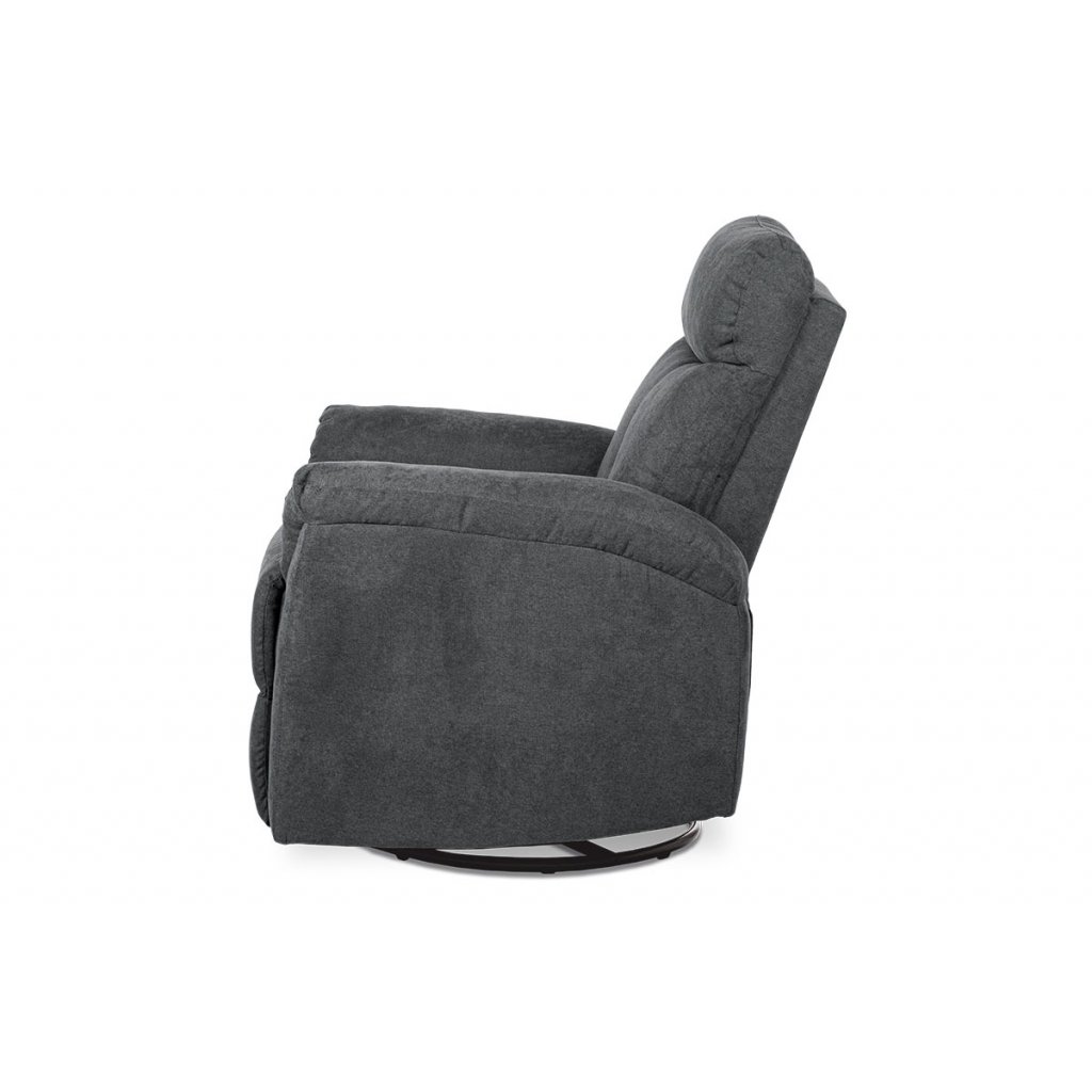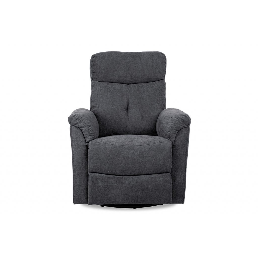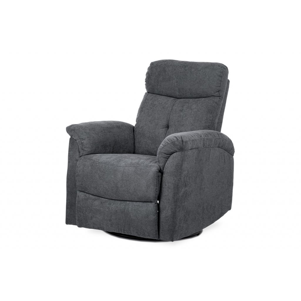 Elegantní a velmi pohodlné polohovatelné TV křeslo z kolekce Comfort, použitelné i jako doplněk k sedací soupravě. Potah je z šedé látky. Kostra z masivního dřeva, boky jsou z překližky. Mechanická konstrukce je kovová, černě lakovaná. Výplň z PU pěny 28D na sedacích plochách, 22D na bocích a 3 vlnovcových pružin v místě sedáku. Funkce – polohovatelné ve dvou pozicích s aretací,je také otočné o 360°a navíc ještě i houpací.. Nosnost křesla je 130 kg. Výška opěráku ve svislé poloze 65cm.