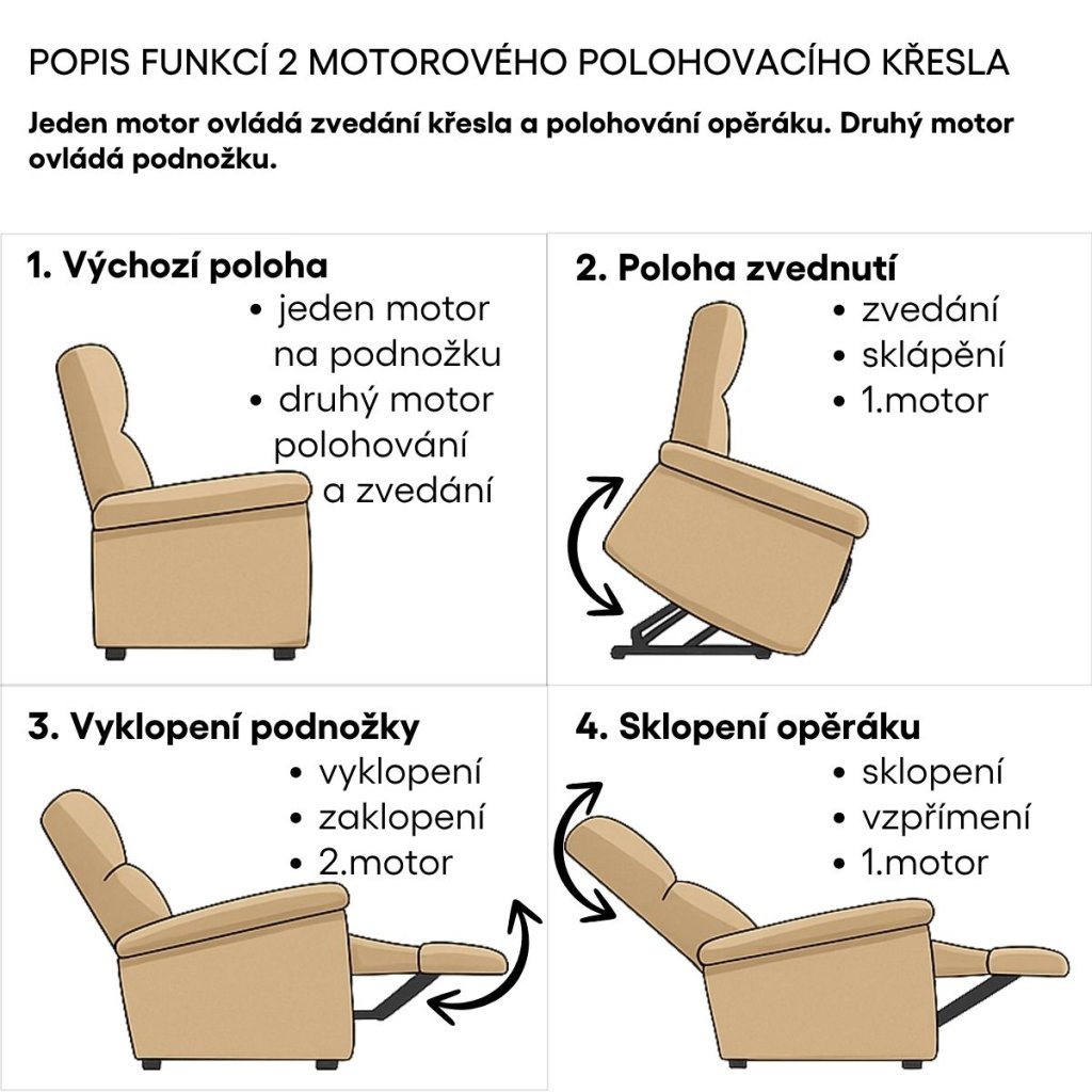 | Vlastnosti: | polohovací, elektrické polohování, zvedací funkce, 2 motorové |