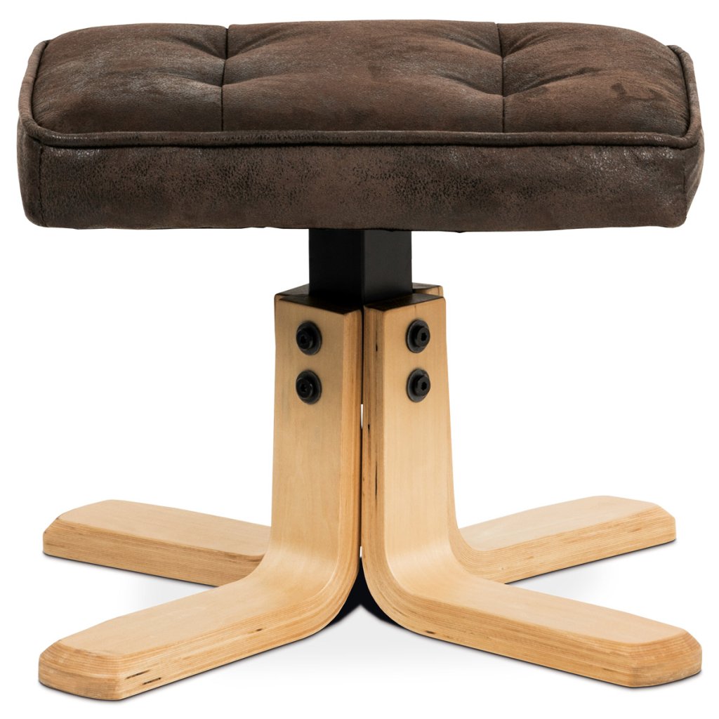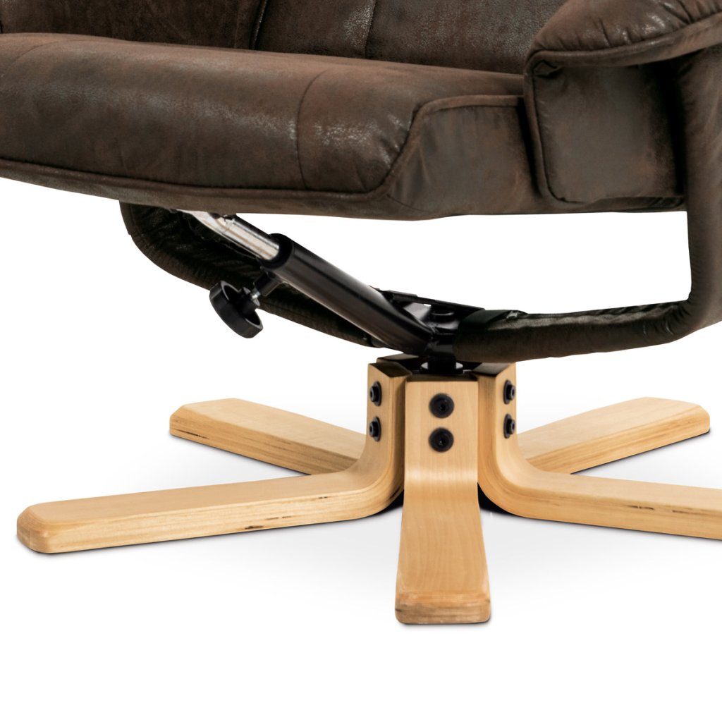 Relaxační a polohovací křeslo s taburetem v hnědé látce v dekoru broušené kůže nabídne měkké sezení, vysokou opěrku a plynulé polohování s aretací. Díky příjemné textuře a masivní dřevěné podnoži zapadne do moderního obýváku i čtecího koutku.