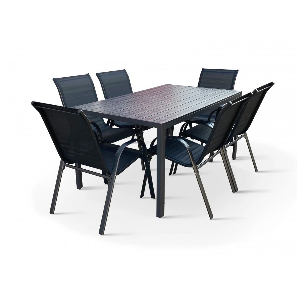 Díky rozměrům stolu 150 x 90 cm je tento set perfektní pro 6 osob, což ho činí skvělou volbou pro menší rodinné oslavy, grilování nebo klidné posezení s přáteli. Stohovatelné židle umožňují snadné uskladnění, pokud právě potřebujete více volného prostoru. Tento praktický prvek vám šetří místo a usnadňuje organizaci terasy či balkonu. Set je tak vhodný nejen pro menší prostory, ale i pro ty, kteří preferují flexibilní a praktická řešení.