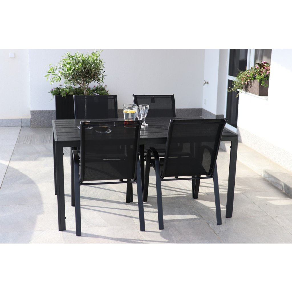 Díky rozměrům stolu 150x90 cm nabízí tento set ideální prostor pro 4 osoby, což je ideální pro menší rodinné oslavy, grilování nebo klidné posezení s přáteli. Stohovatelné židle vám umožní snadno uskladnit nábytek, pokud zrovna nepotřebujete místo. Tento praktický prvek vám šetří prostor a usnadní udržování pořádku na vaší terase nebo balkonu. Set je tak vhodný nejen pro menší prostory, ale i pro ty, kteří preferují flexibilitu a praktické řešení.