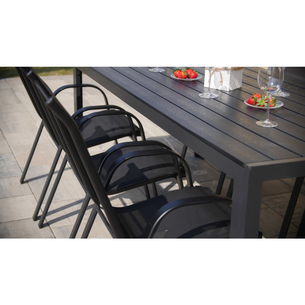 Jedním z největších benefitů tohoto setu je jeho stohovatelnost. Židle lze snadno skládat na sebe, což šetří místo, pokud set zrovna nepotřebujete, nebo když chcete uskladnit nábytek během zimy. Tento praktický prvek je ideální pro menší prostory nebo pro ty, kteří potřebují prostor na jiné aktivity. S rozměrem stolu 205x90 cm se pohodlně usadí až 6 osob, což je ideální pro setkání s přáteli nebo rodinné obědy. Můžete tedy organizovat větší venkovní akce, aniž byste museli mít obavy o prostor.