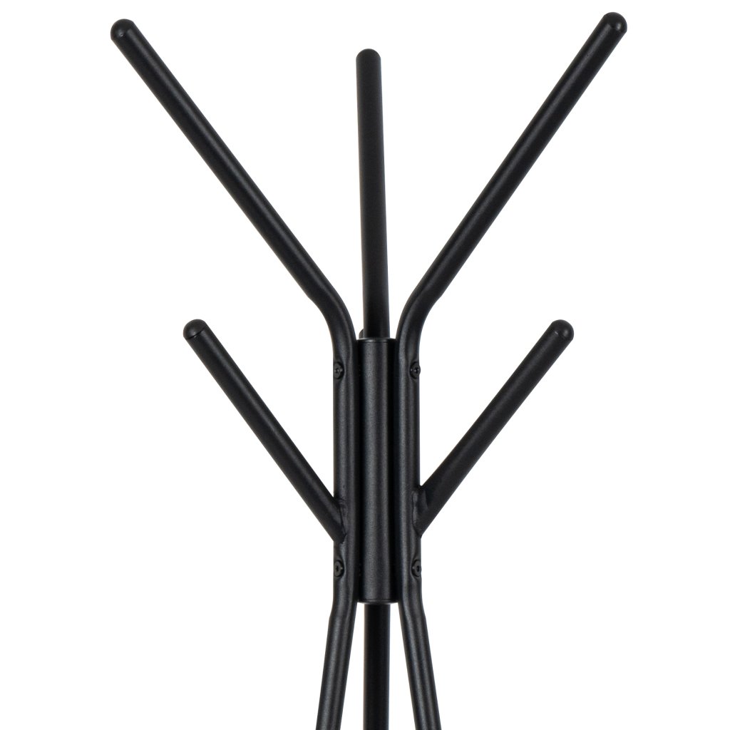 Moderní stojanový věšák s minimalistickým designem. Více háčků pro pohodlné zavěšení oblečení či doplňků. Stabilní základna zajišťuje pevnost a odolnost.