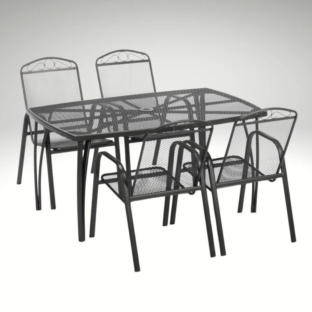 Kovová konstrukce stolu i židlí je doplněná o úpravu proti rzi, což je důležité pro venkovní provoz. Pokud vybíráte odolné zahradní stoly a zahradní židle a křesla, tady jste správně.