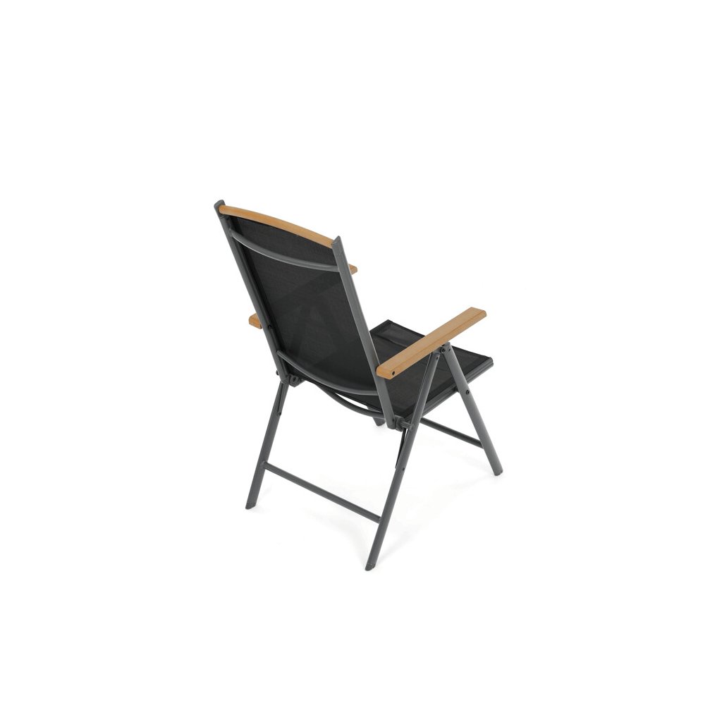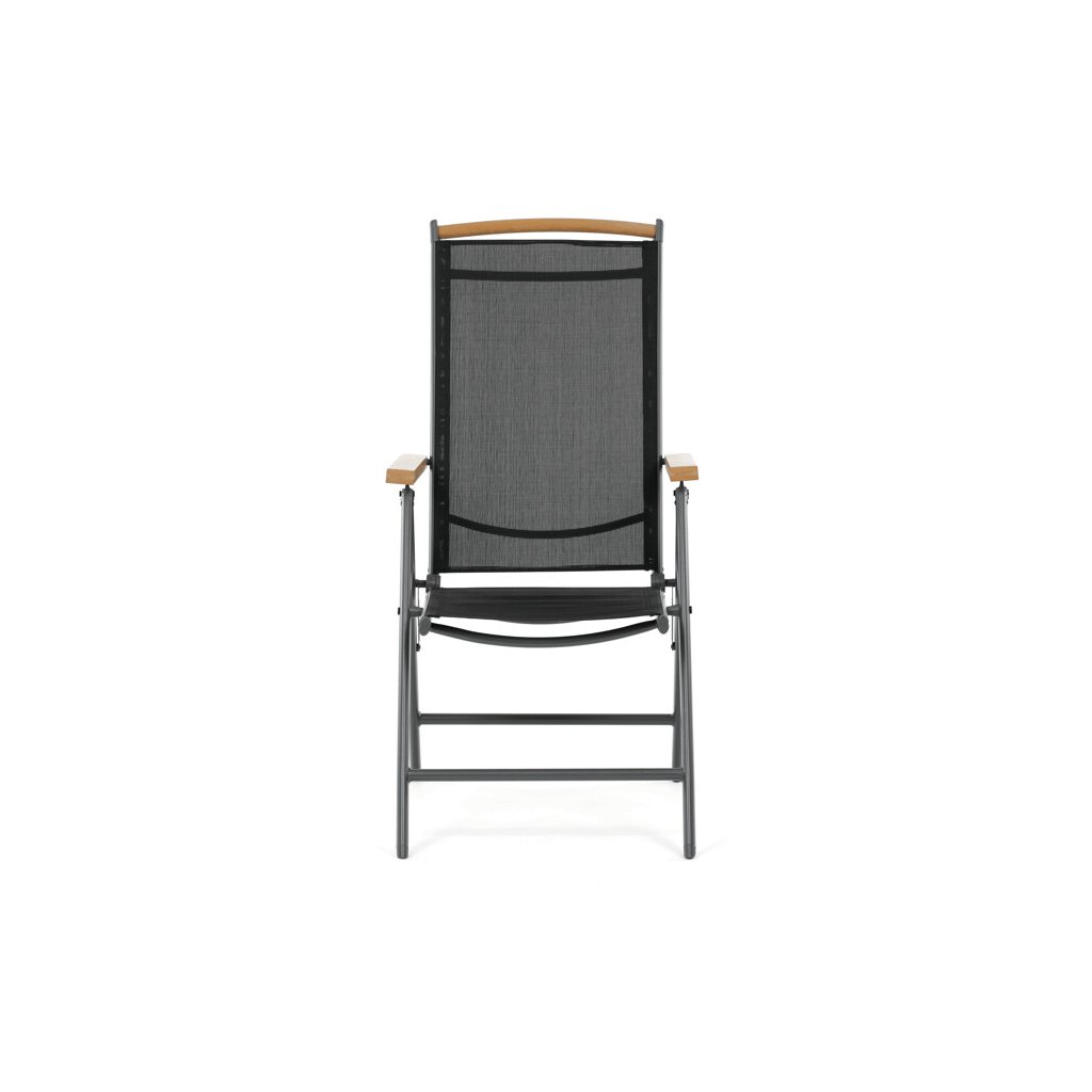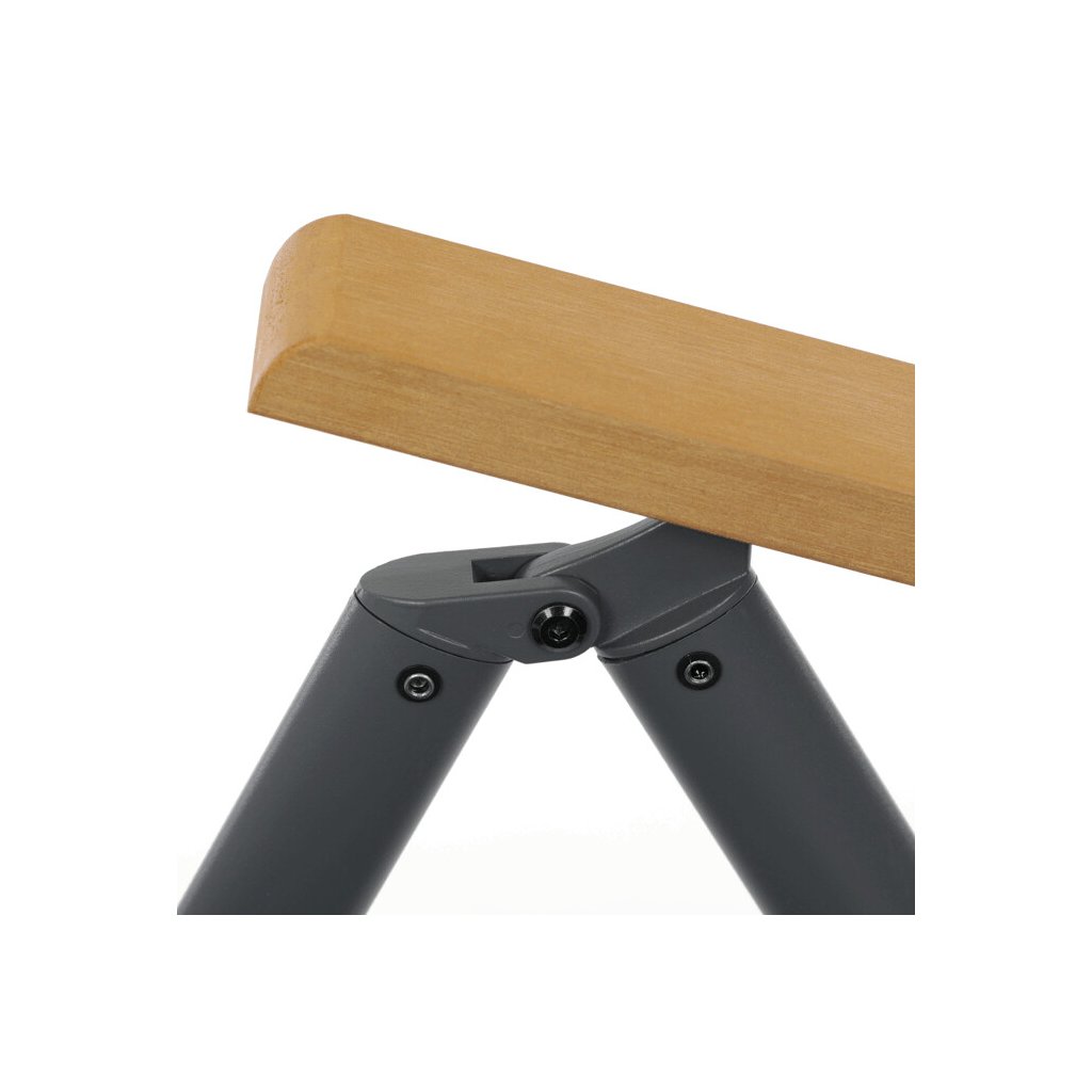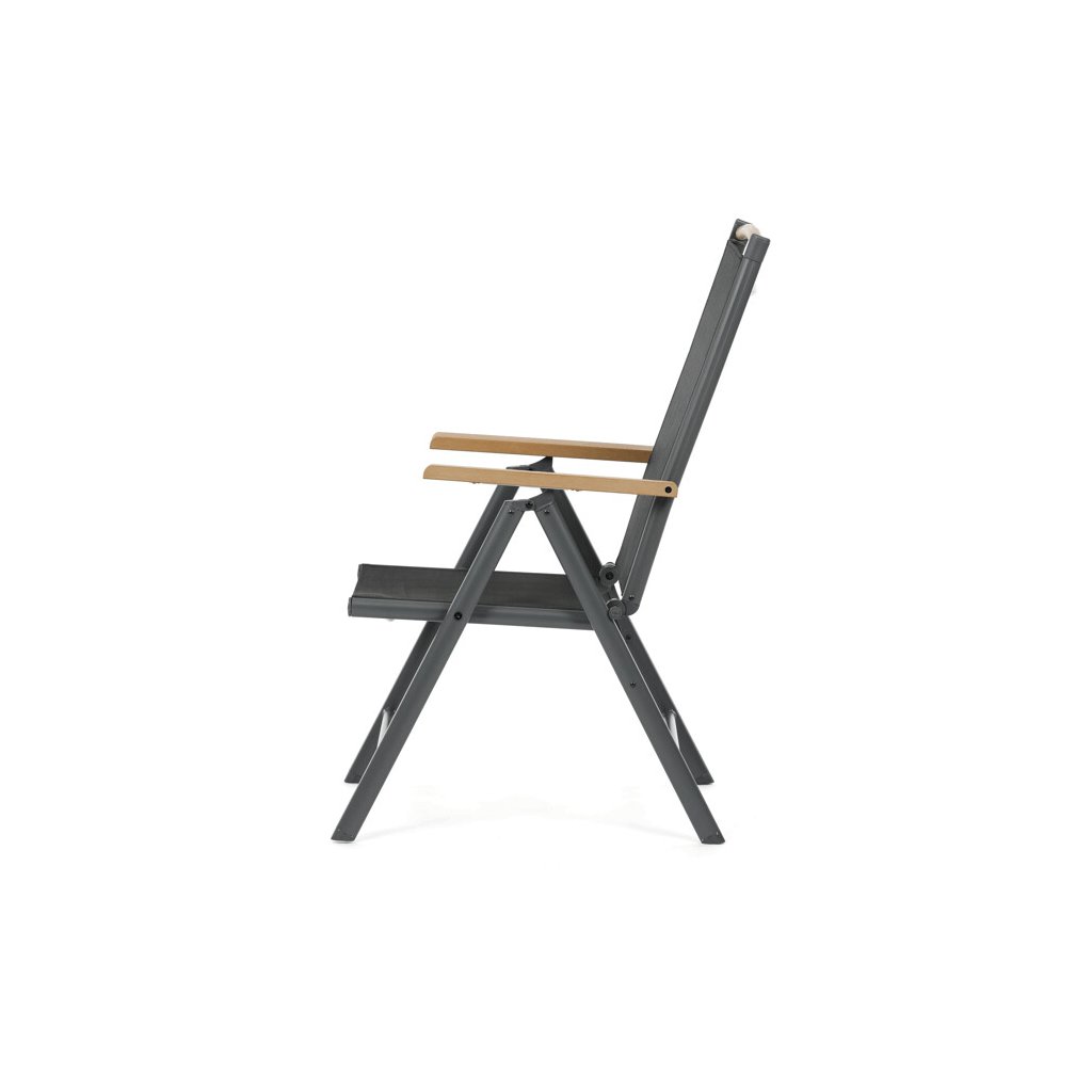 Zahradní židle se sklápěcí funkcí nabízí kombinaci pevné hliníkové konstrukce s práškovou povrchovou úpravou a pohodlného textilního sedáku a opěráku v šedé barvě. Opěradlo je nastavitelné, což umožňuje individuální přizpůsobení úhlu sklonu pro maximální komfort při relaxaci. Dřevěné polywoodové područky v přírodní barvě dodávají židli elegantní vzhled a příjemný dotek. Díky skládacímu mechanismu je snadné židli přenášet i skladovat. Stabilita a odolnost jsou zajištěny kvalitním materiálem a konstrukcí vhodnou pro venkovní použití.