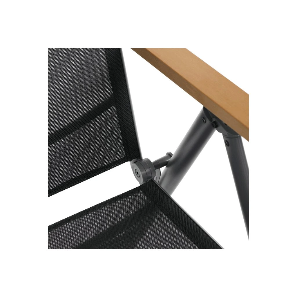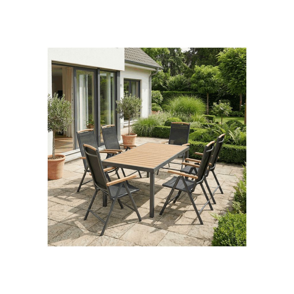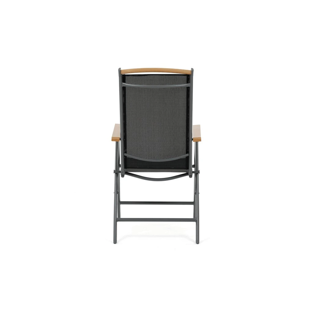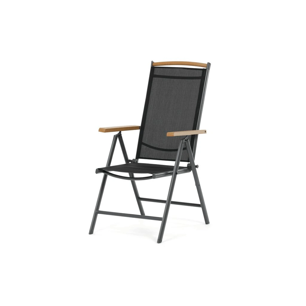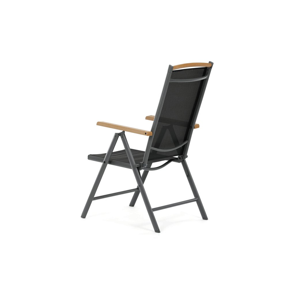 Zahradní židle se sklápěcí funkcí nabízí kombinaci pevné hliníkové konstrukce s práškovou povrchovou úpravou a pohodlného textilního sedáku a opěráku v šedé barvě. Opěradlo je nastavitelné, což umožňuje individuální přizpůsobení úhlu sklonu pro maximální komfort při relaxaci. Dřevěné polywoodové područky v přírodní barvě dodávají židli elegantní vzhled a příjemný dotek. Díky skládacímu mechanismu je snadné židli přenášet i skladovat. Stabilita a odolnost jsou zajištěny kvalitním materiálem a konstrukcí vhodnou pro venkovní použití.