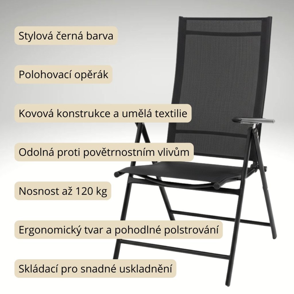 Zahradní polohovací židle V130 černá ZA AKČNÍ CENU