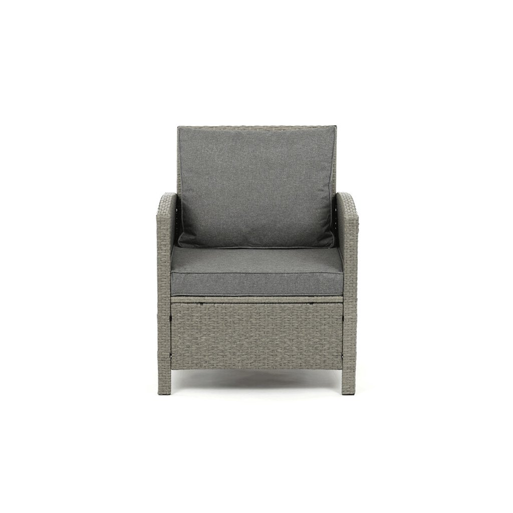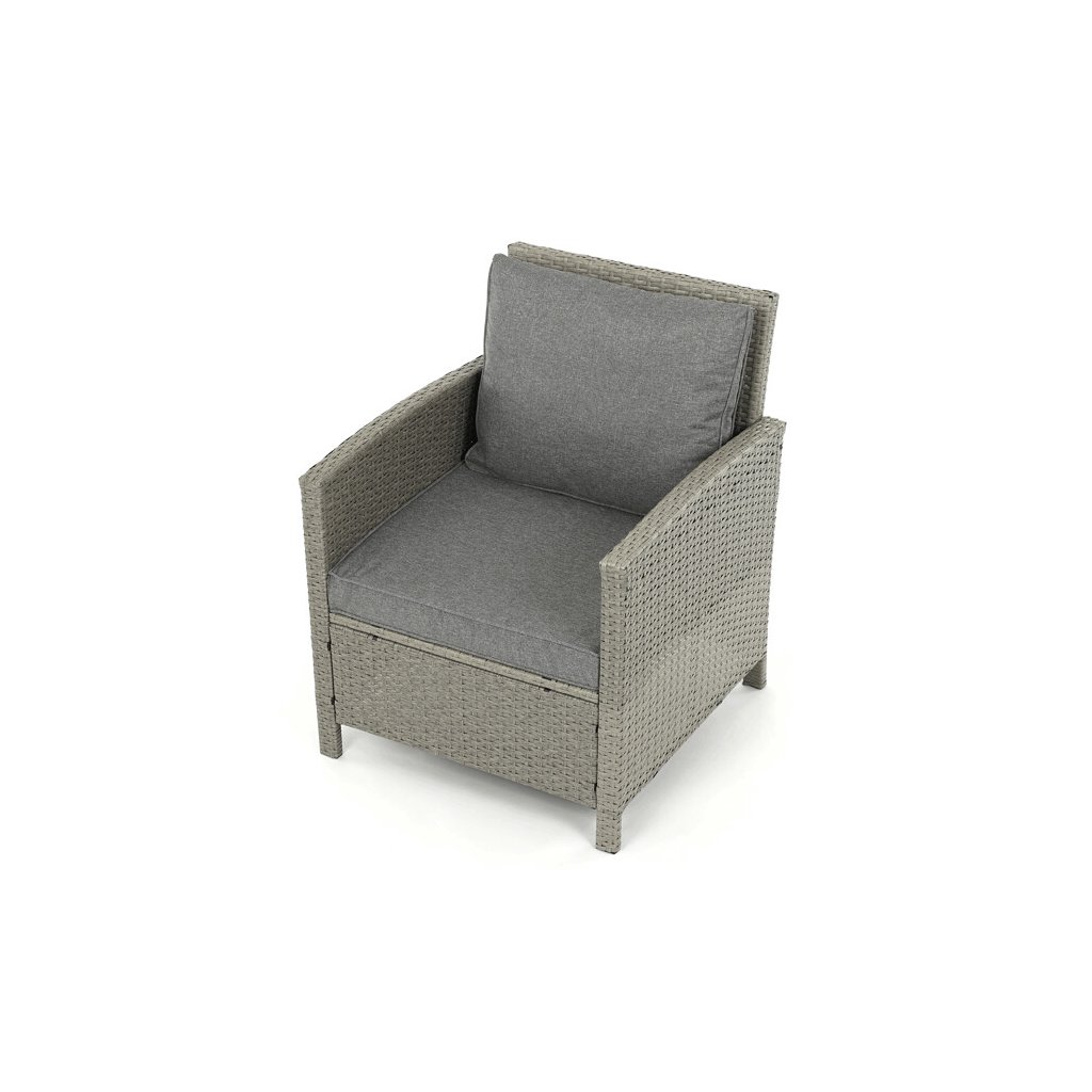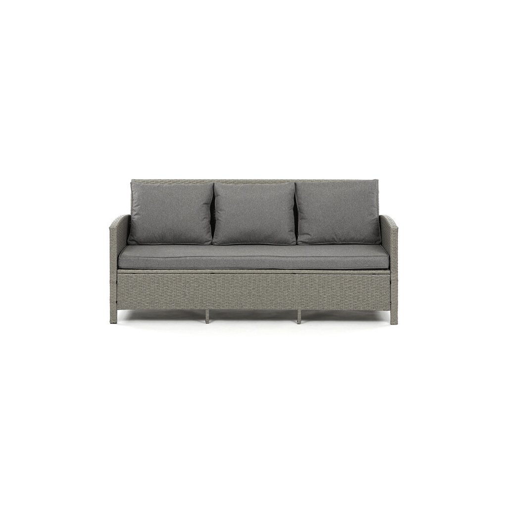 Zahradní sestava 140x70x60cm, polyratan, šedá. Zahradní sestava s jídelním stolem v šedém provedení kombinuje pevnou kovovou konstrukci s elegantním povrchem z umělého ratanu, který věrně imituje p...