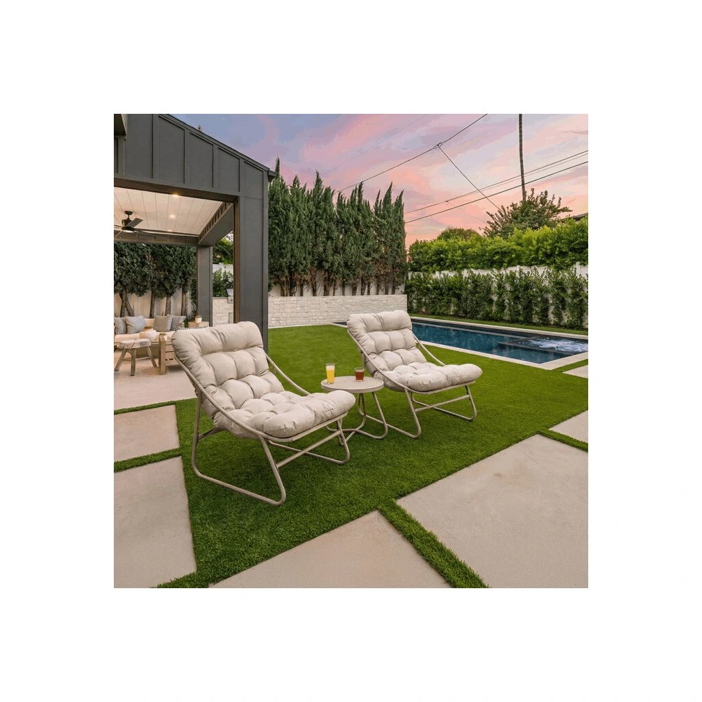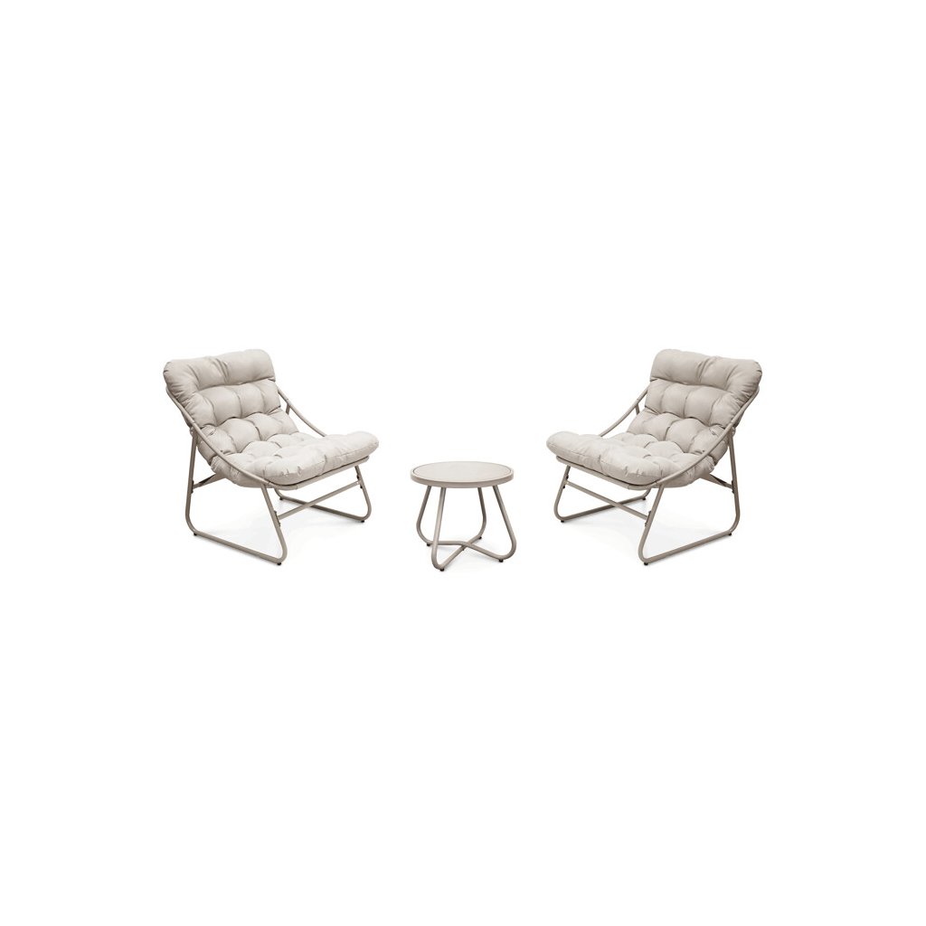 Zahradní set 1+2 v krémovém provedení kombinuje nadčasový design s pevnou kovovou konstrukcí, která zajišťuje stabilitu a dlouhou životnost. Součástí jsou dvě pohodlné křesla s čalouněním z měkké látky, která je příjemná na dotek a vhodná pro venkovní použití. Nízký stolek s deskou z tvrzeného skla nabízí odolný a snadno udržovatelný povrch ideální pro odkládání nápojů či drobných předmětů. Kovové rámy mají jemně zaoblené tvary, které podtrhují elegantní a vzdušný vzhled celého setu. Díky kompaktním rozměrům je tento set vhodný pro menší terasy, balkony nebo zahradní kouty.