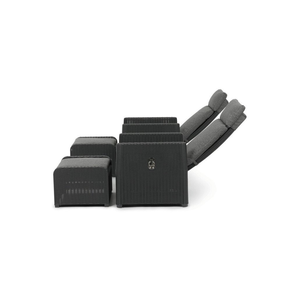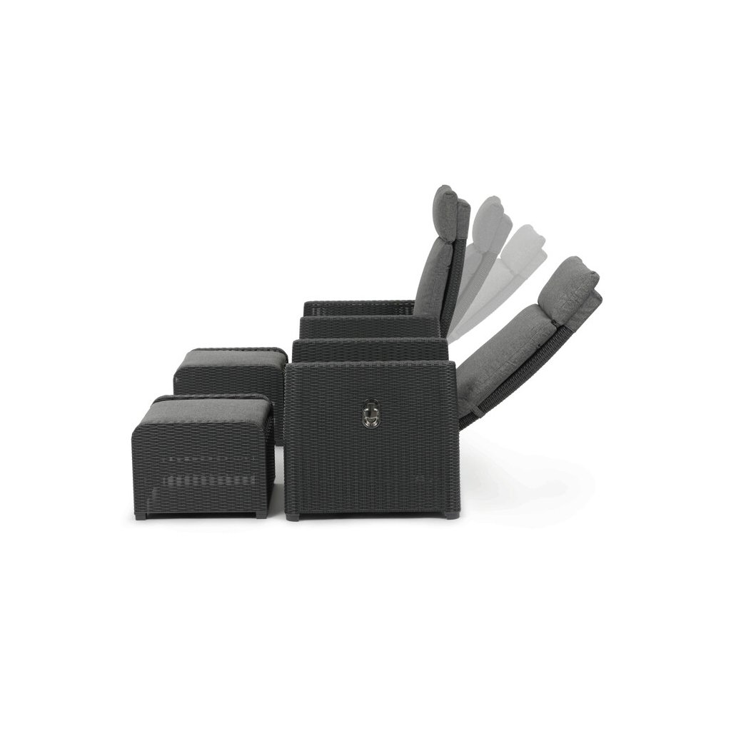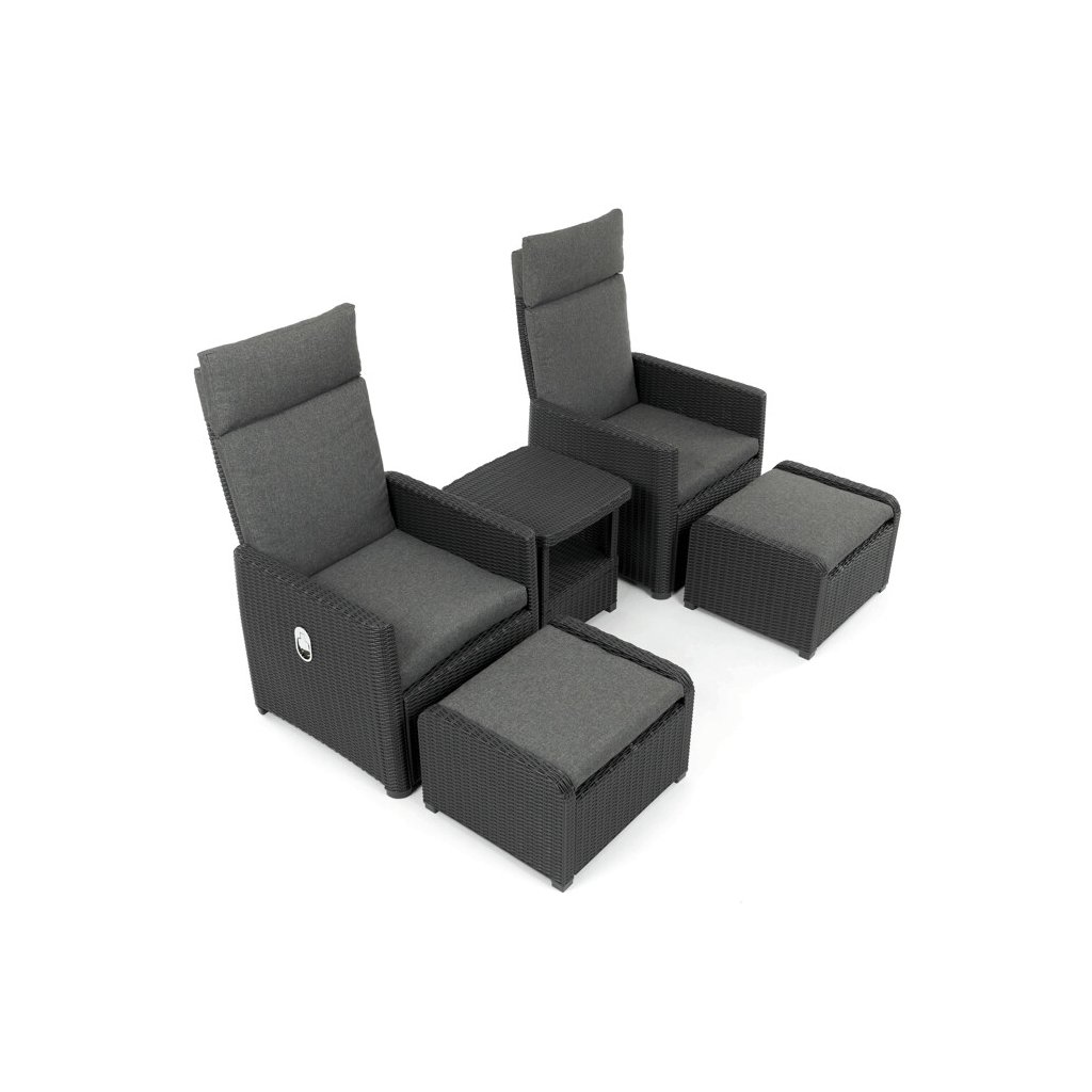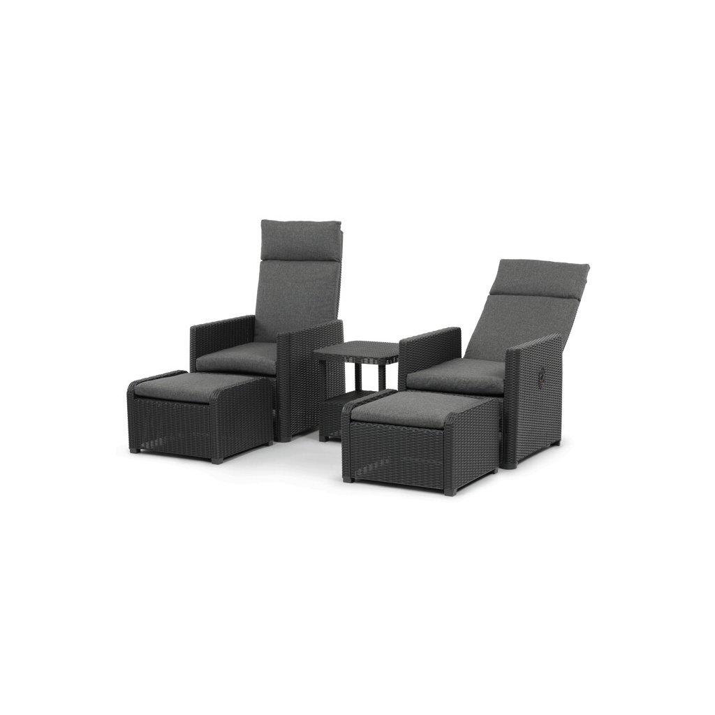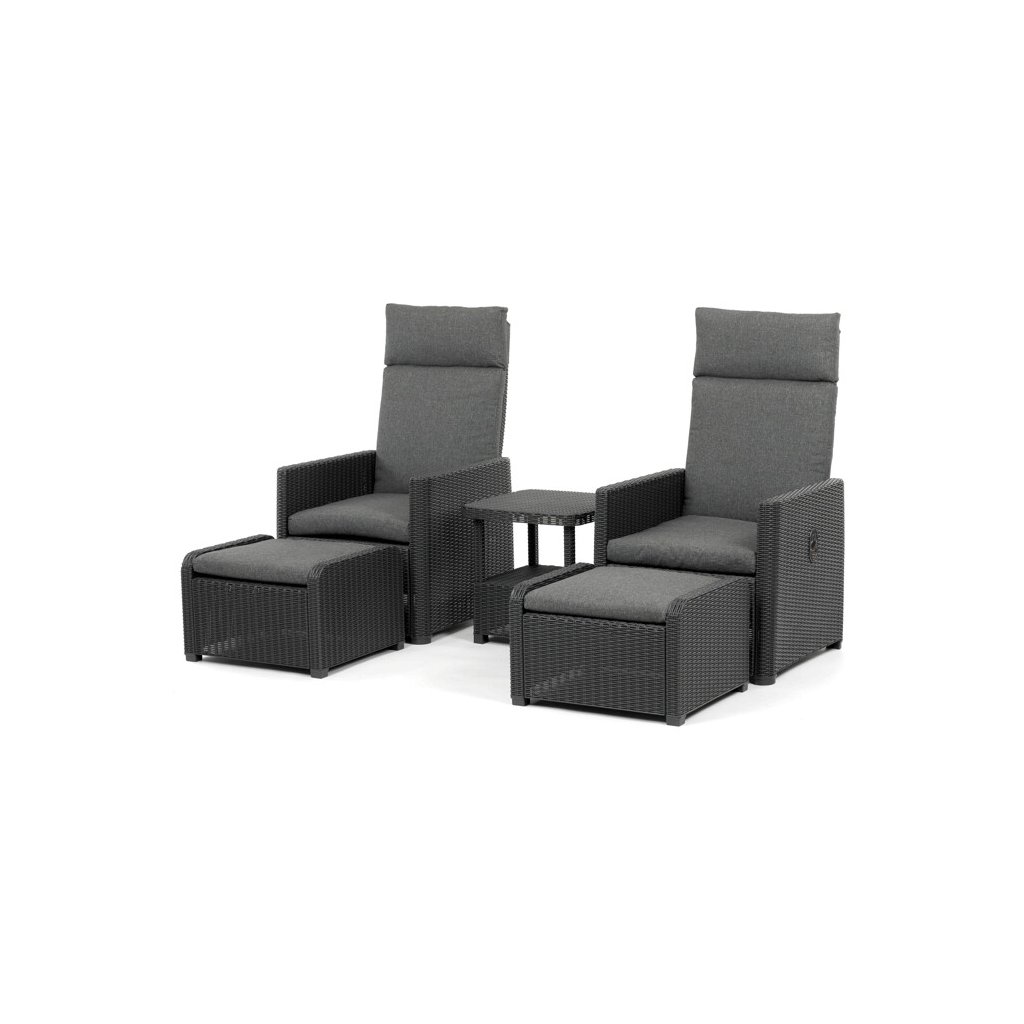 Zahradní set 1+2 v šedém provedení kombinuje pevný kovový rám s výplní z polyratanu které zajišťuje snadnou údržbu a dlouhou životnost i při venkovním použití. Sada obsahuje dvě polohovací křesla s nastavitelným sklonem opěradla pro maximální komfort a dva bonusové taburety, které lze využít jako podnožky nebo další sedací plochy. Součástí je také praktický stolek s deskou z umělého ratanu, který doplňuje celkový vzhled a funkčnost setu. Ideální volba pro relaxaci na zahradě, terase či balkóně.