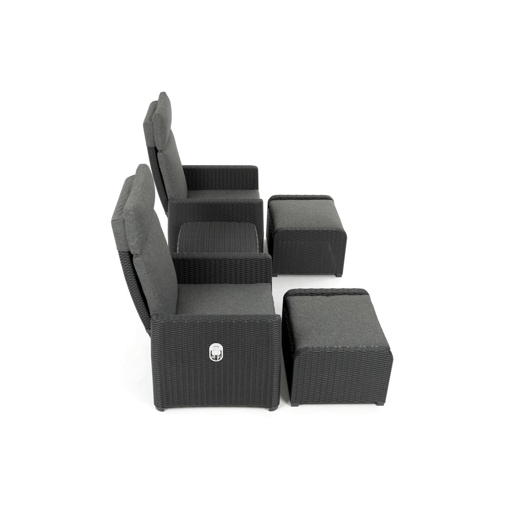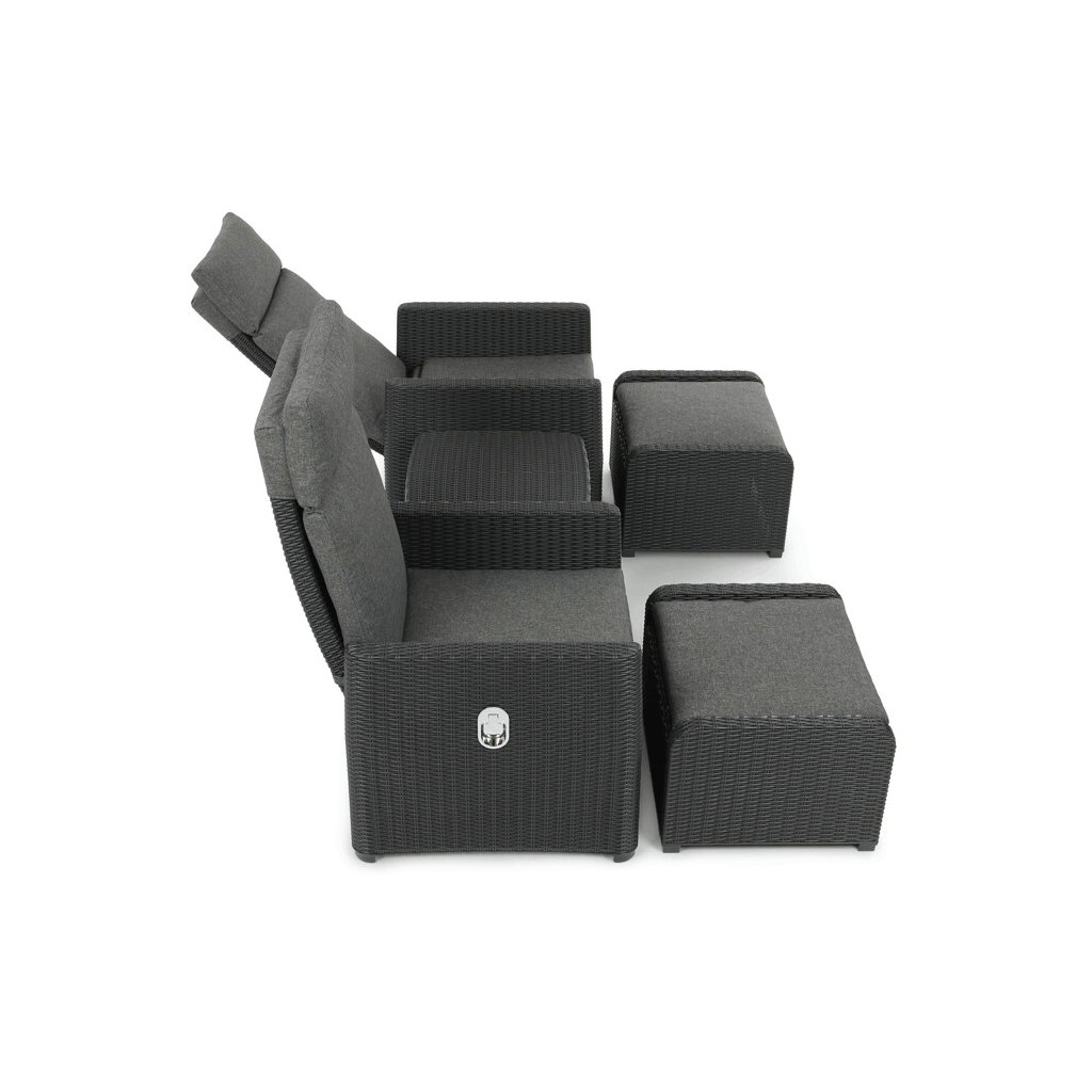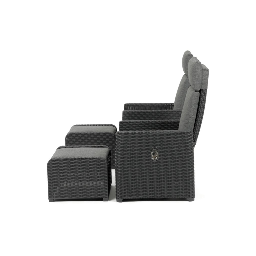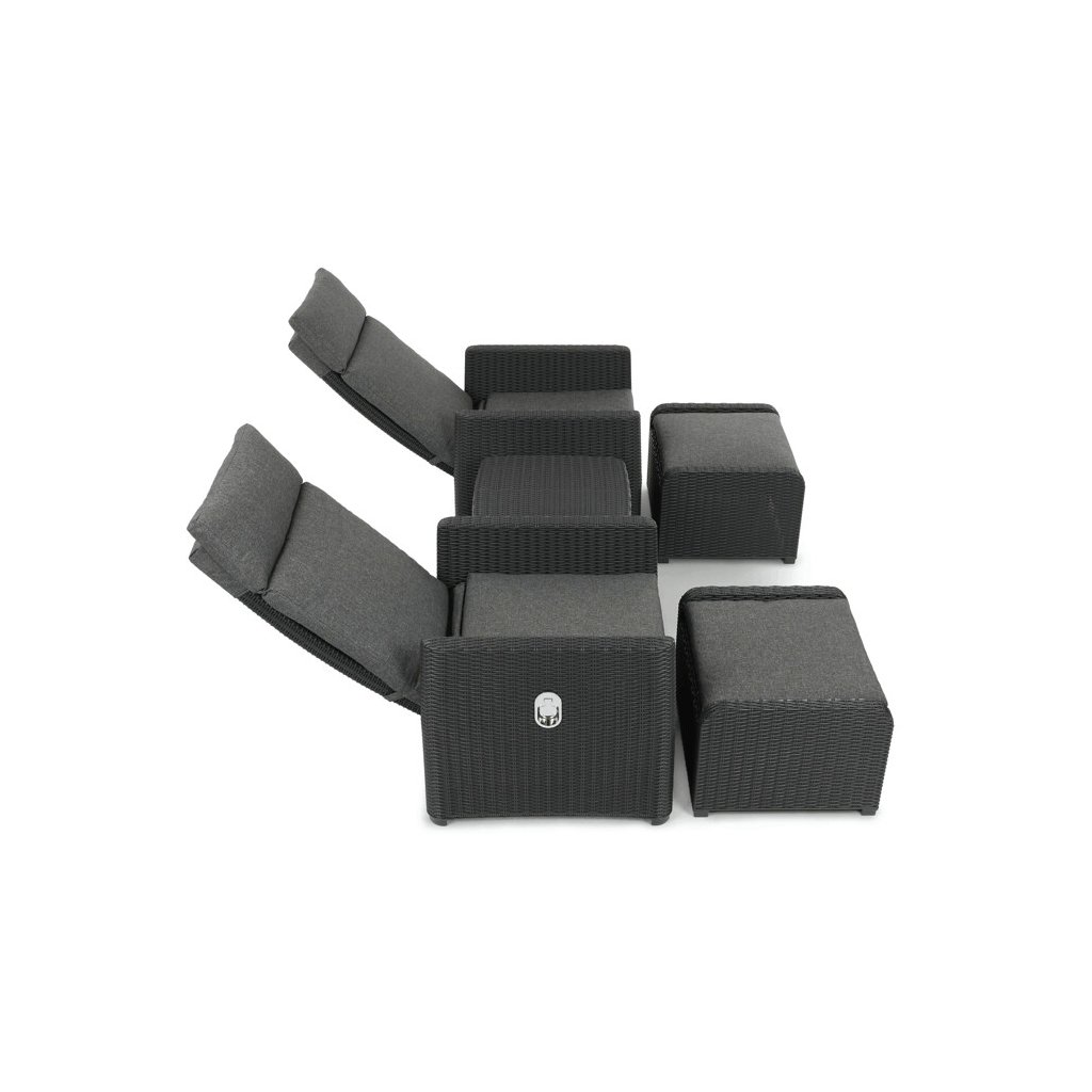 Zahradní set 1+2 v šedém provedení kombinuje pevný kovový rám s výplní z polyratanu které zajišťuje snadnou údržbu a dlouhou životnost i při venkovním použití. Sada obsahuje dvě polohovací křesla s nastavitelným sklonem opěradla pro maximální komfort a dva bonusové taburety, které lze využít jako podnožky nebo další sedací plochy. Součástí je také praktický stolek s deskou z umělého ratanu, který doplňuje celkový vzhled a funkčnost setu. Ideální volba pro relaxaci na zahradě, terase či balkóně.
