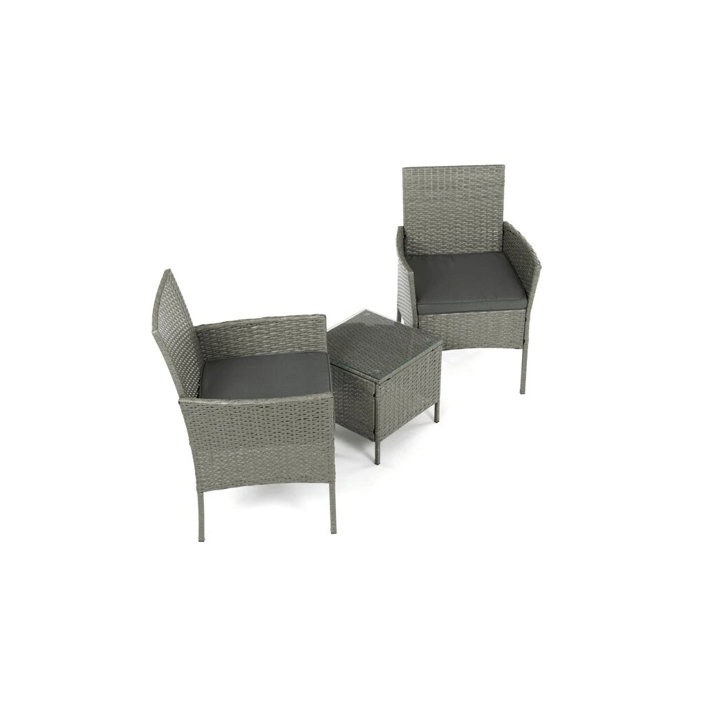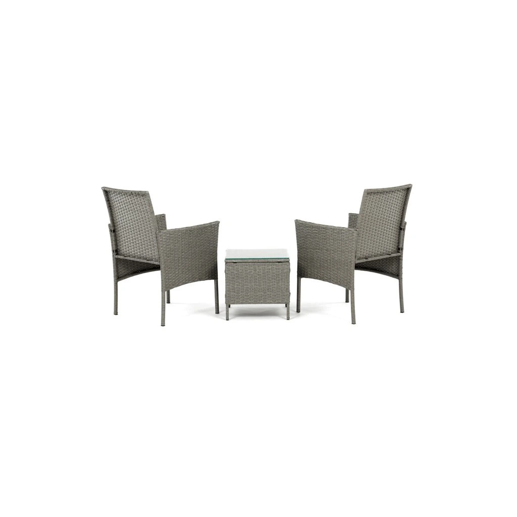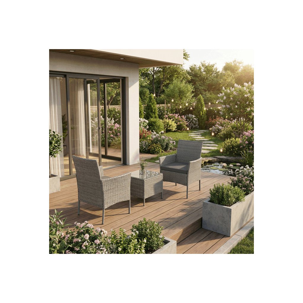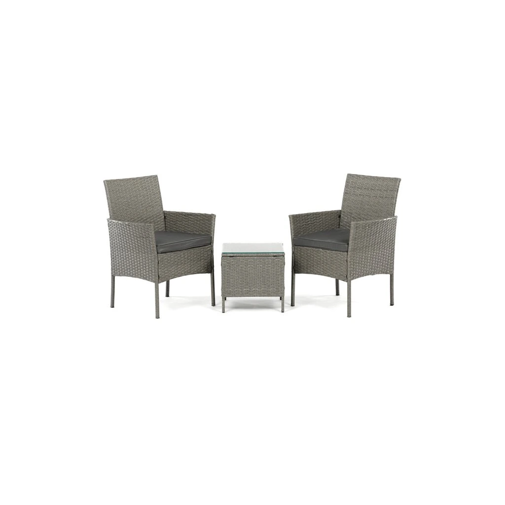 Zahradní set 1+2 v šedém provedení z umělého ratanu nabízí kombinaci stylu a funkčnosti pro venkovní posezení. Pevná kovová konstrukce zajišťuje stabilitu a dlouhou životnost, zatímco odolný polyratan věrně imituje přírodní materiál a snadno se udržuje. Součástí jsou dvě pohodlná křesla s polstrovanými šedými látkovými sedáky, které přispívají k pohodlnému posezení. Stolová deska je vyrobena z tvrzeného skla, které je odolné vůči poškrábání a snadno se čistí. Kompaktní rozměry a elegantní design umožňují využití na balkónech i menších terasách.