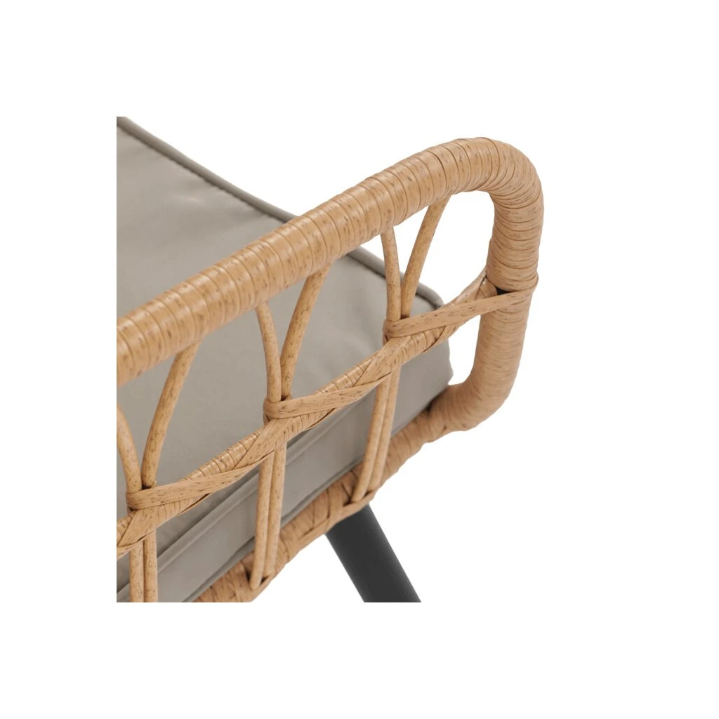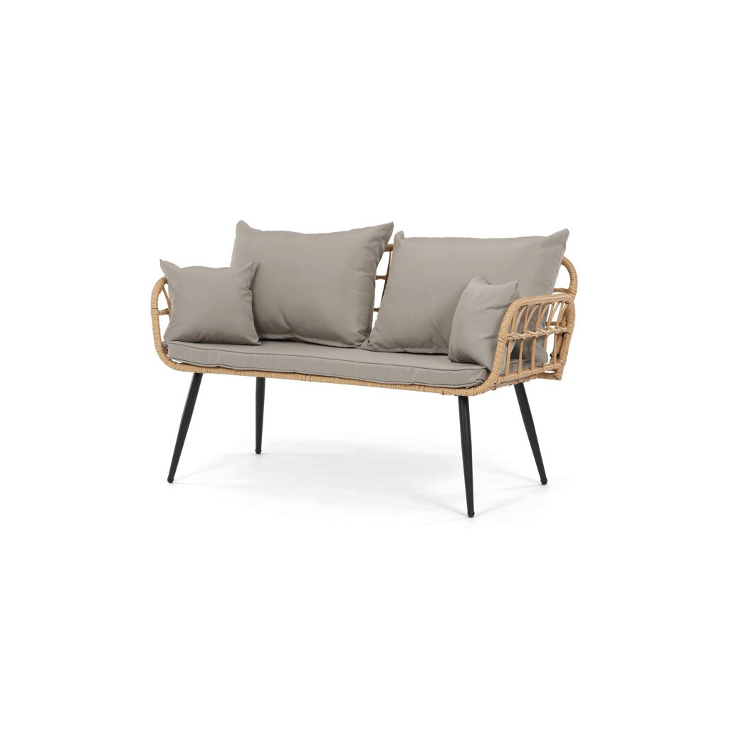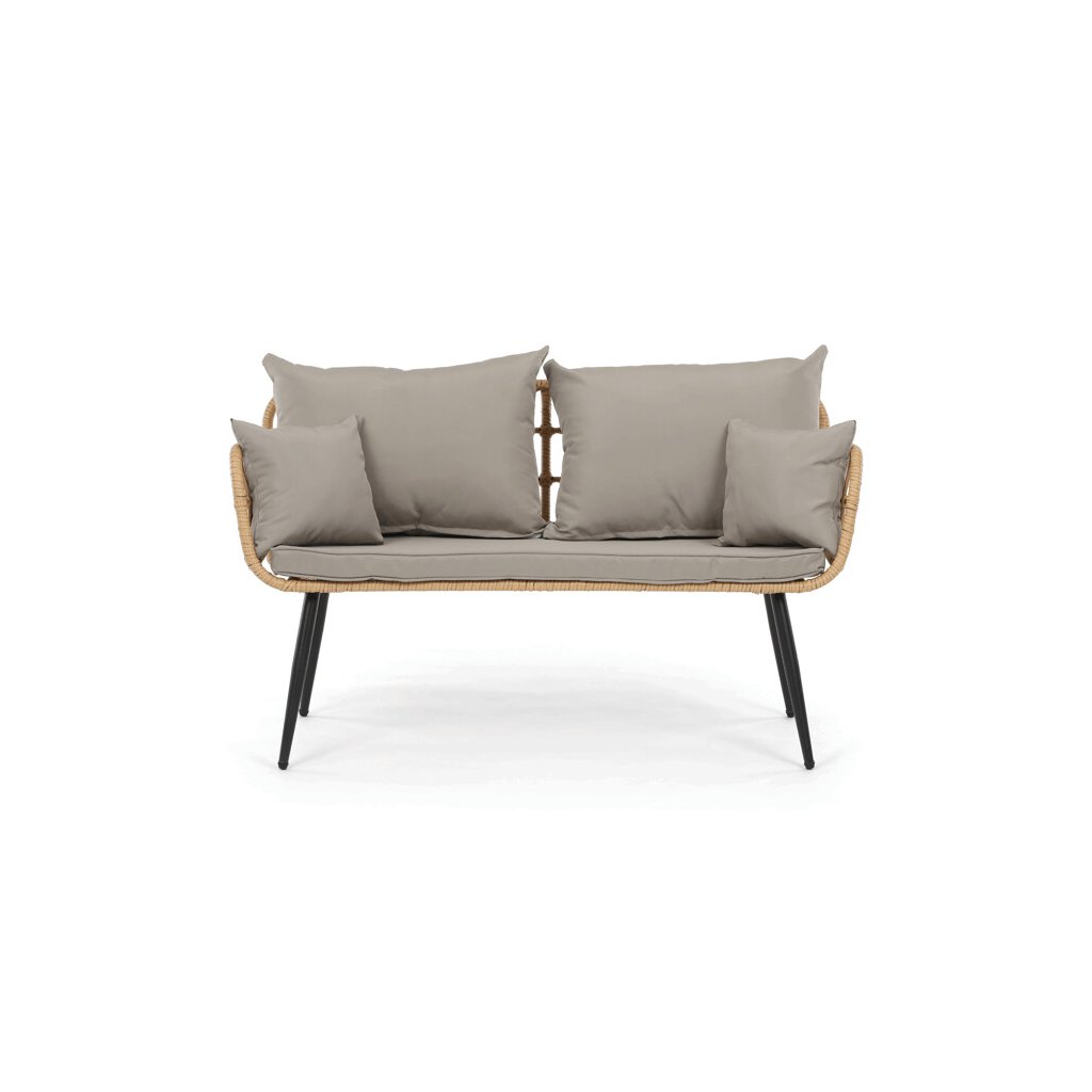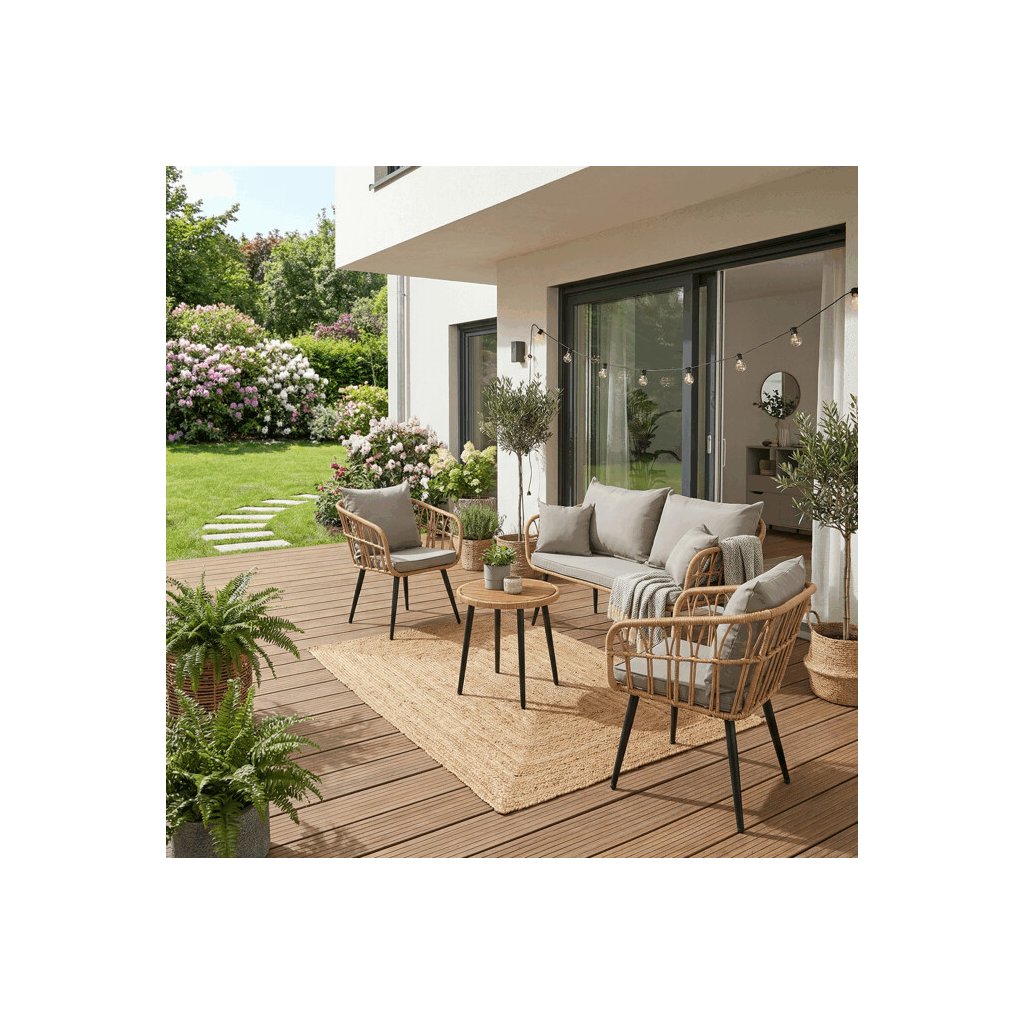 Zahradní sedací souprava kombinuje pevnou kovovou konstrukci v černé barvě s odolným umělým ratanem v béžovém odstínu a polywoodovou deskou stolku, která je navržena pro dlouhodobé venkovní použití. Souprava sestává z pohodlné dvoumístné pohovky a dvou samostatných křesel, všech vybavených voděodolnými šedými polstry, které zajišťují komfort i při venkovním posezení. Kovové nohy s práškovým lakem přispívají ke stabilitě a odolnosti proti povětrnostním vlivům, zatímco lehce otevřená konstrukce opěradel a područek podporuje vzdušnost a moderní vzhled. Polywoodová deska stolku je snadno udržovatelná a doplňuje celkový design sestavy, která je ideální pro relaxaci na terase či zahradě. Nosnost jednotlivých sedadel odpovídá standardním požadavkům pro venkovní nábytek, což zaručuje bezpečné a pohodlné užívání.