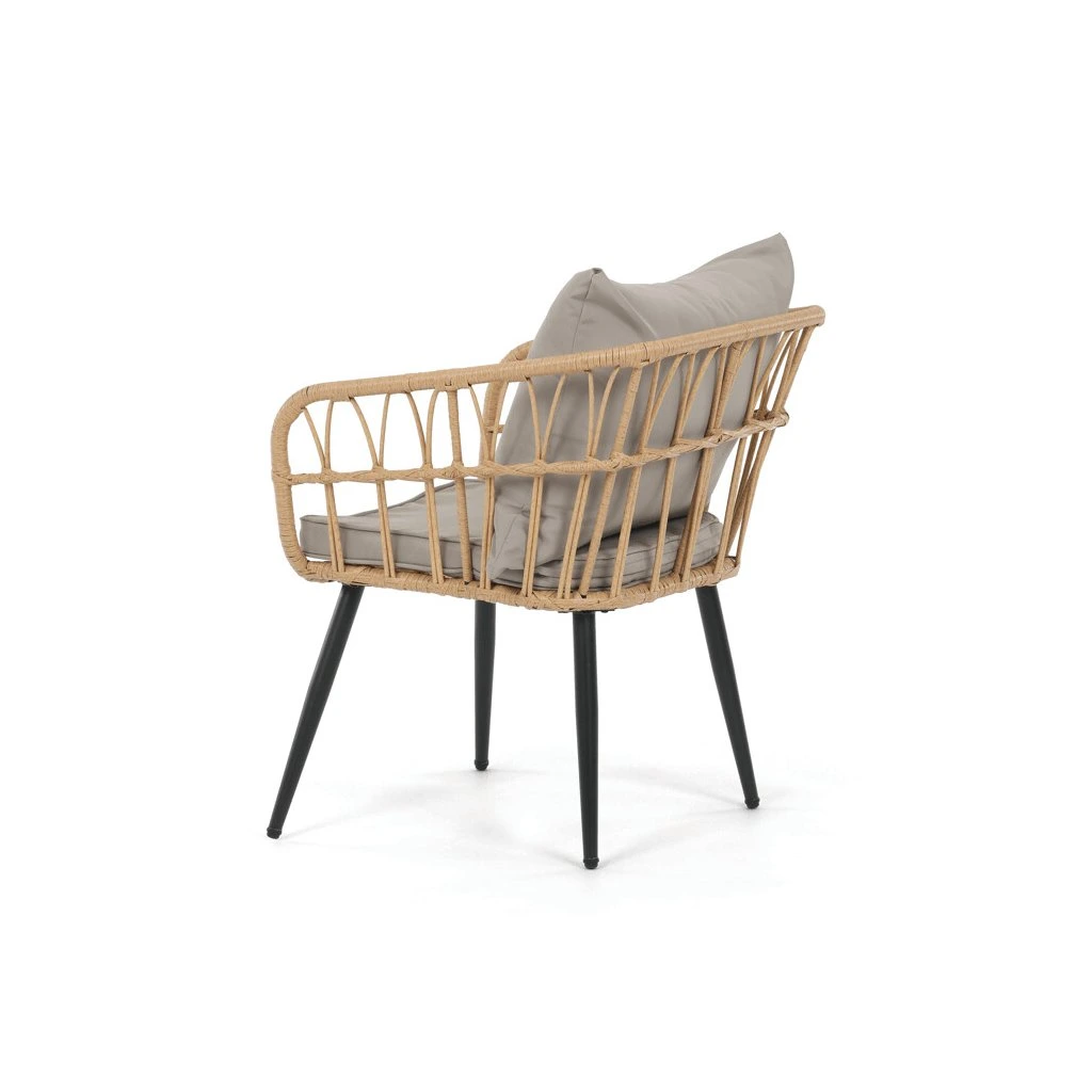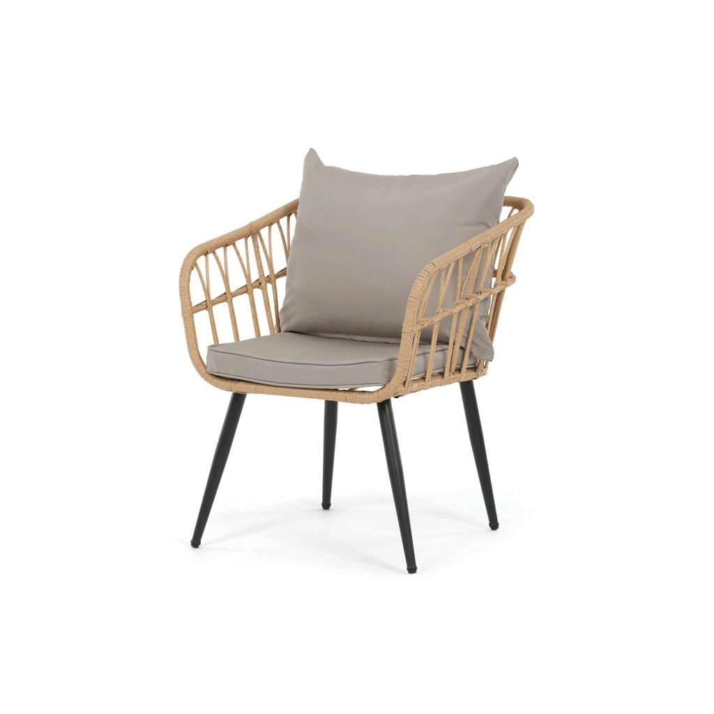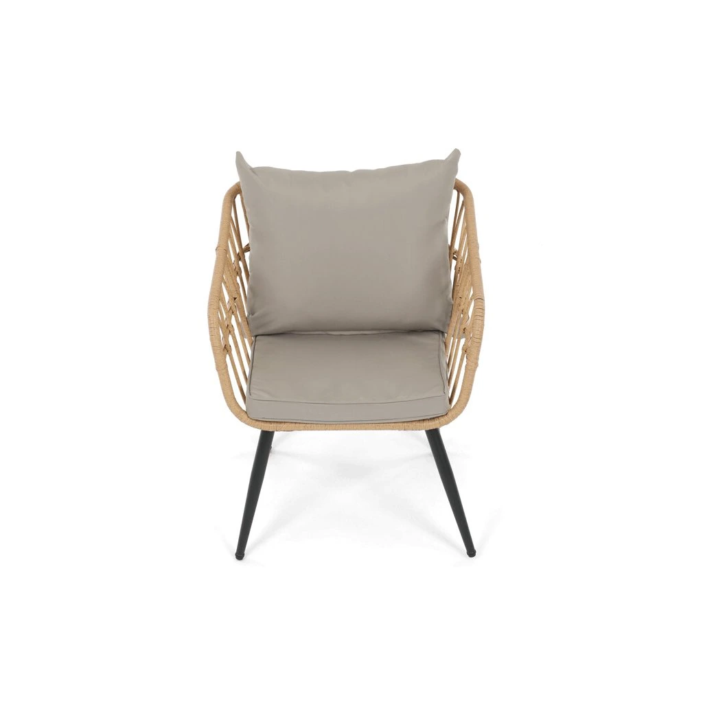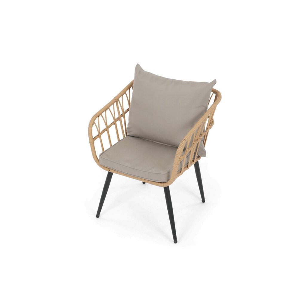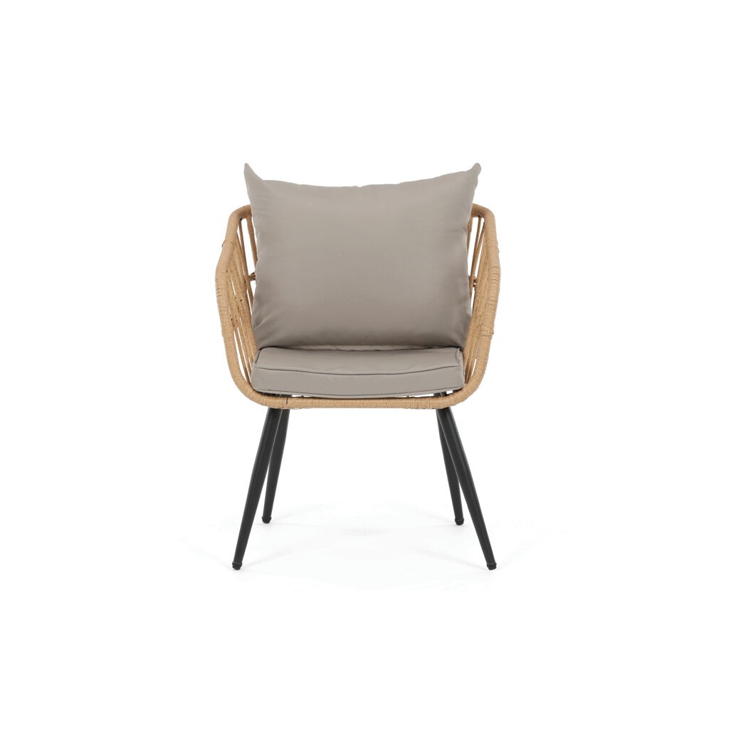 Zahradní sedací souprava kombinuje pevnou kovovou konstrukci v černé barvě s odolným umělým ratanem v béžovém odstínu a polywoodovou deskou stolku, která je navržena pro dlouhodobé venkovní použití. Souprava sestává z pohodlné dvoumístné pohovky a dvou samostatných křesel, všech vybavených voděodolnými šedými polstry, které zajišťují komfort i při venkovním posezení. Kovové nohy s práškovým lakem přispívají ke stabilitě a odolnosti proti povětrnostním vlivům, zatímco lehce otevřená konstrukce opěradel a područek podporuje vzdušnost a moderní vzhled. Polywoodová deska stolku je snadno udržovatelná a doplňuje celkový design sestavy, která je ideální pro relaxaci na terase či zahradě. Nosnost jednotlivých sedadel odpovídá standardním požadavkům pro venkovní nábytek, což zaručuje bezpečné a pohodlné užívání.