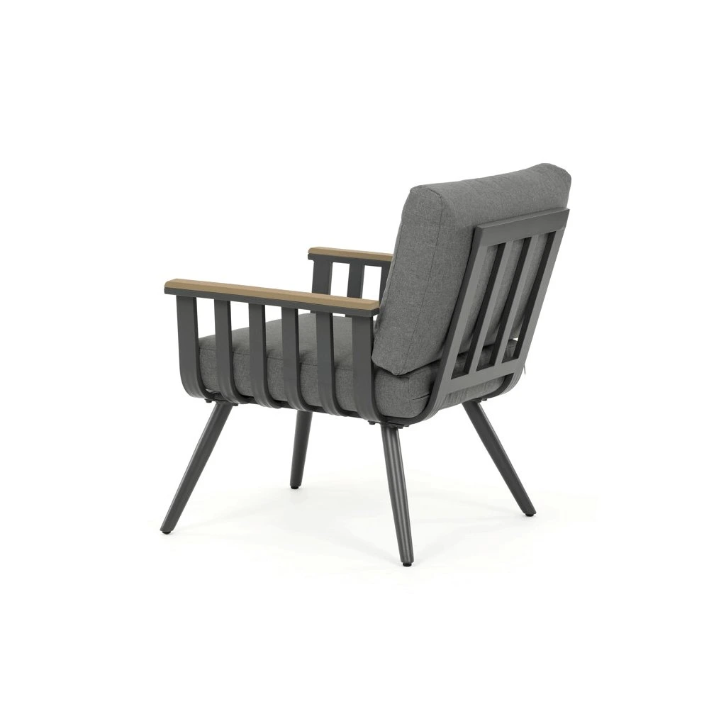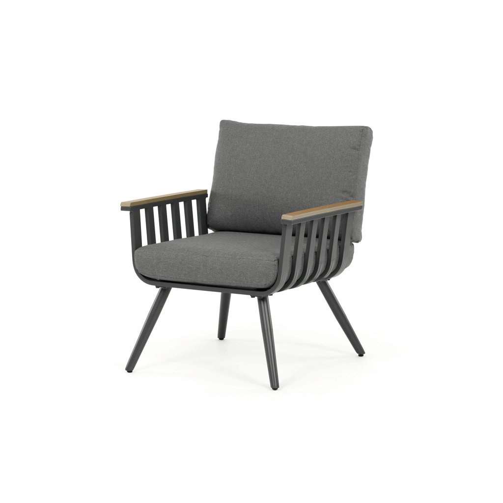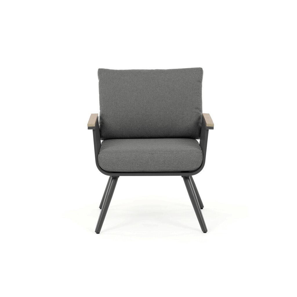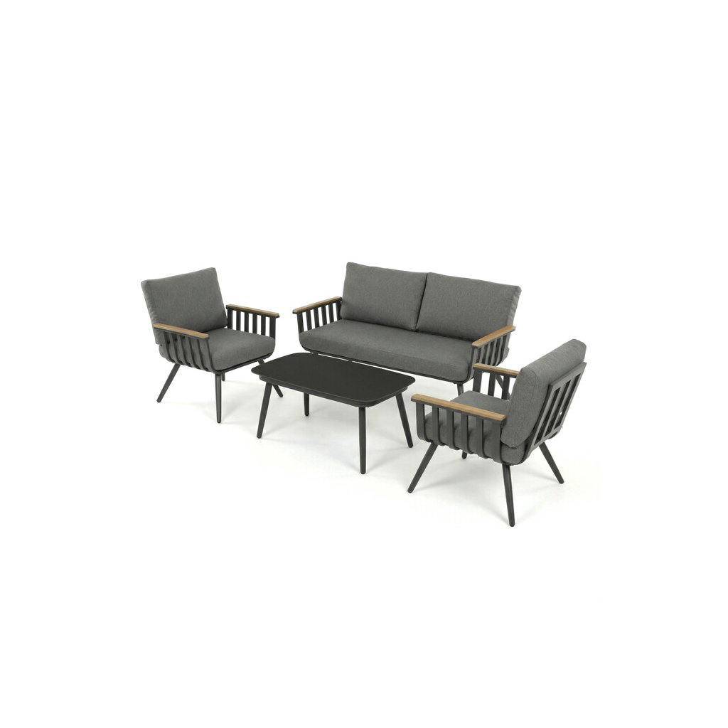 Zahradní sestava, hliník, šedá. Zahradní set v šedém provedení kombinuje pevný hliníkový rám s odolnými polywoodovými prvky v dekoru divokého dubu, které zajišťují dlouhou životnost...