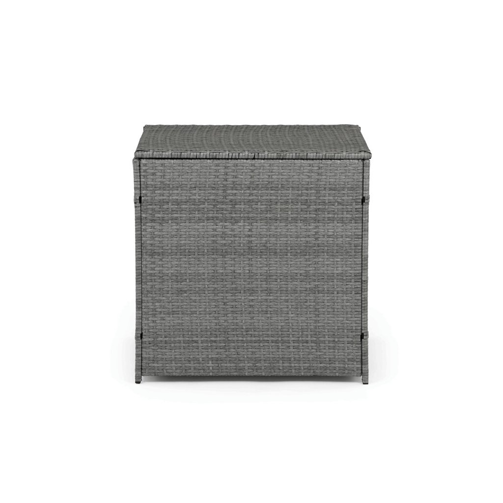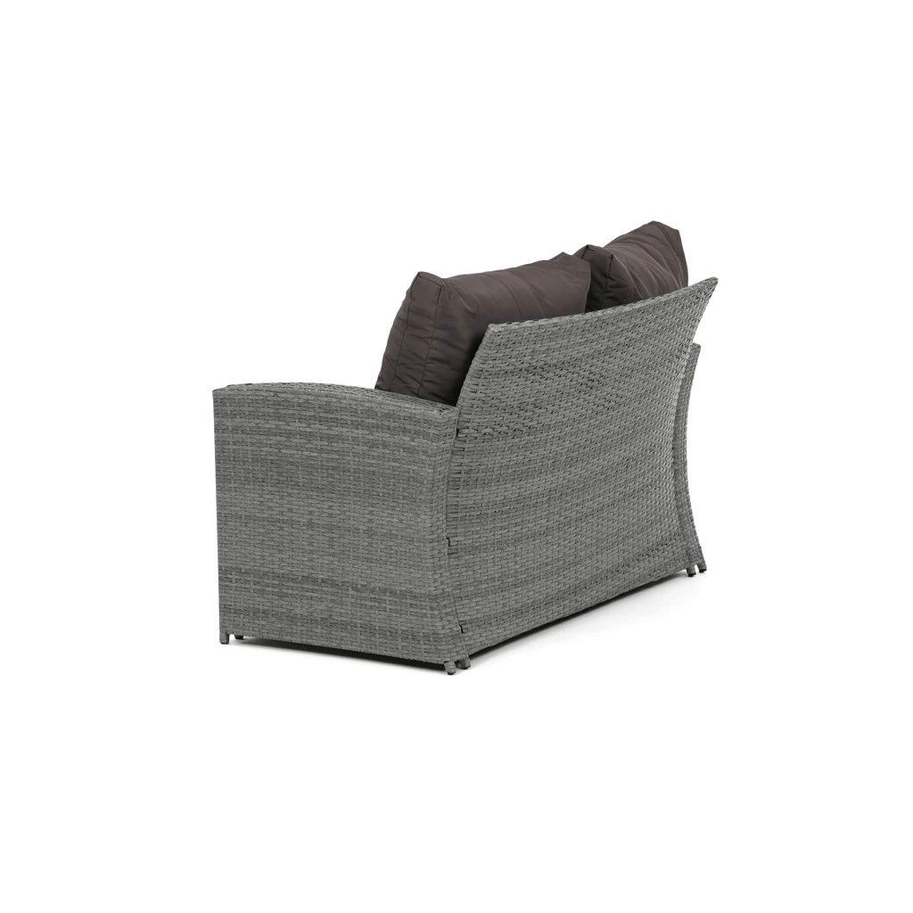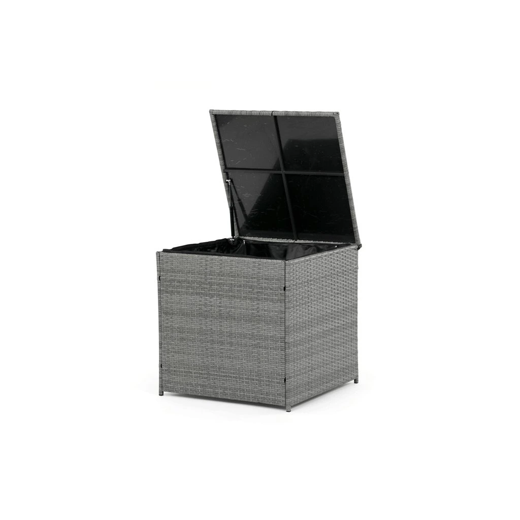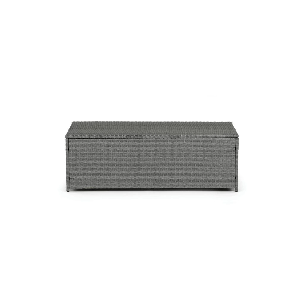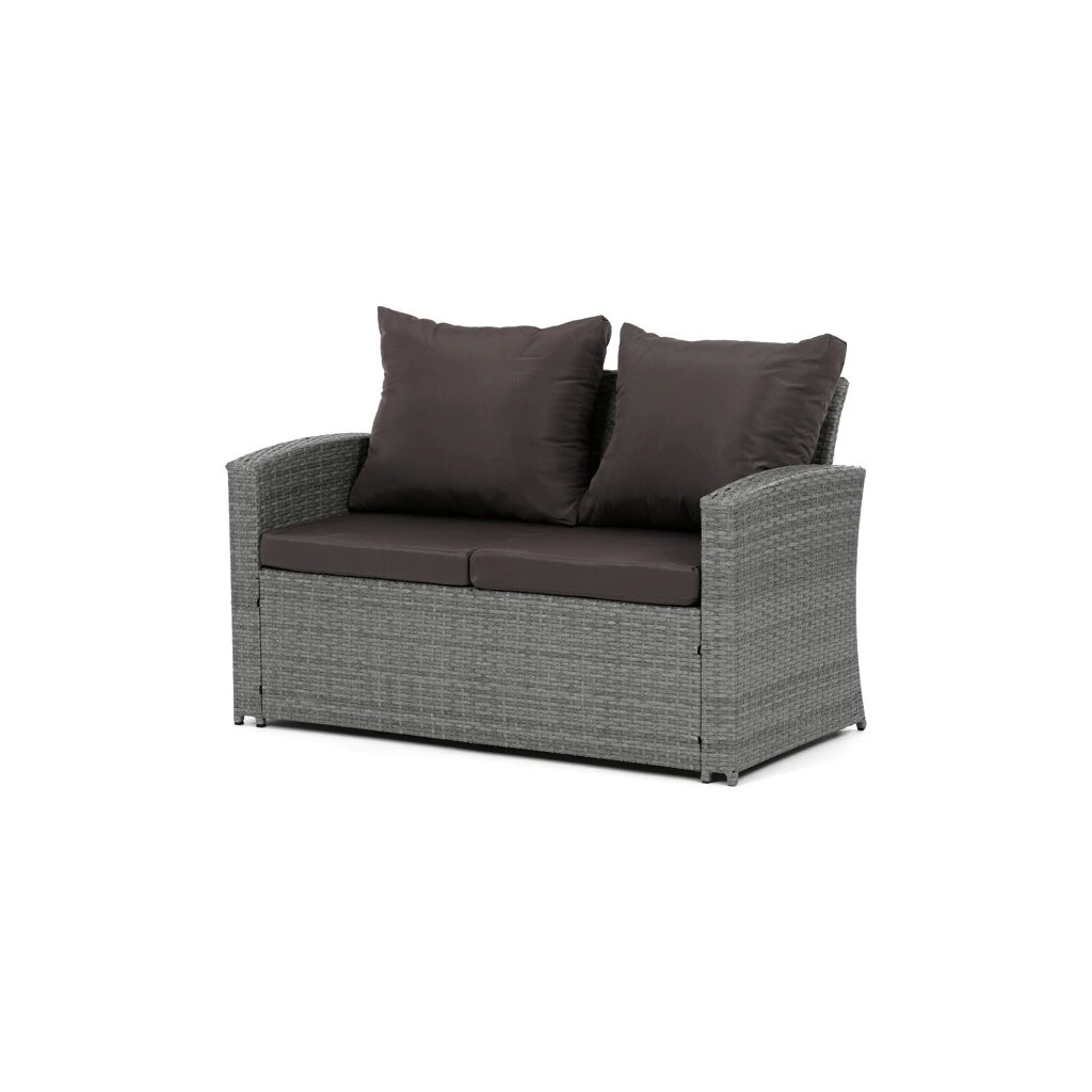 Zahradní sestava kombinuje moderní design s praktickými funkcemi pro pohodlné venkovní posezení. Pevný rám z kovu je opleten kvalitním šedým polyratanem, který je odolný vůči povětrnostním vlivům a snadno se udržuje. Sestava obsahuje dvěi samostatná křesla dvoumístnou a trojmístnou pohovku, všechny vybavené tmavě šedými polstrovanými sedáky a opěrkami pro zvýšení komfortu. Součástí je také stolek s víkem, pod kterým se nachází úložný prostor vhodný pro uskladnění polštářů nebo drobných zahradních doplňků. Variabilní konfigurace umožňuje sestavu přizpůsobit různým prostorům a potřebám, přičemž stabilní konstrukce zajišťuje dlouhodobou životnost a komfortní užívání.