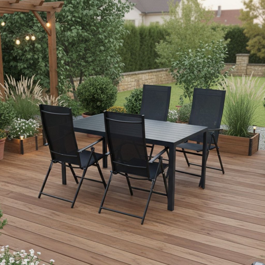 Venkovní zahradní set pro 4 osoby V134 černý – styl a pohodlí na vaší terase 🌞