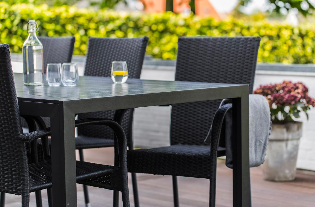 - Stůl z odolného Artwoodu a židle z umělého ratanu s pevnou kovovou konstrukcí – materiály, které spojují krásu a dlouhou životnost.