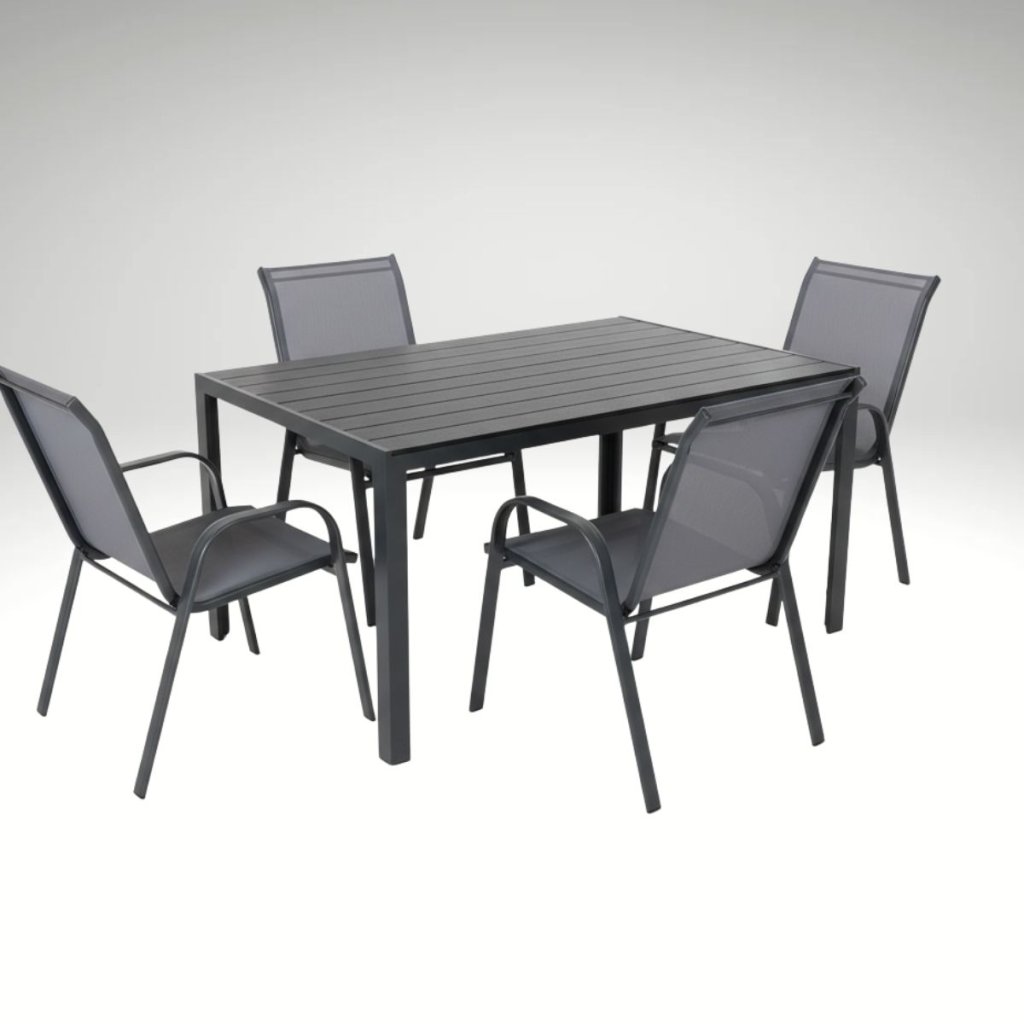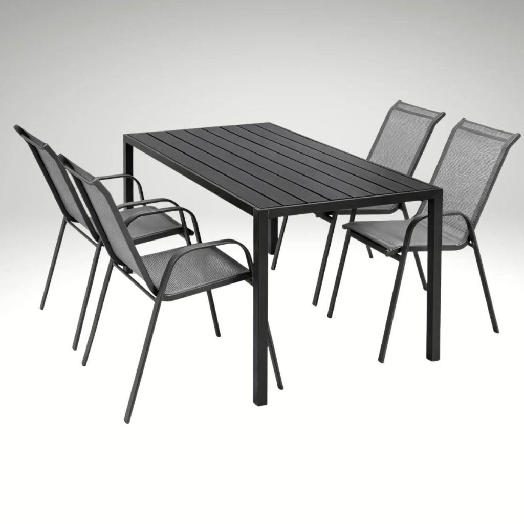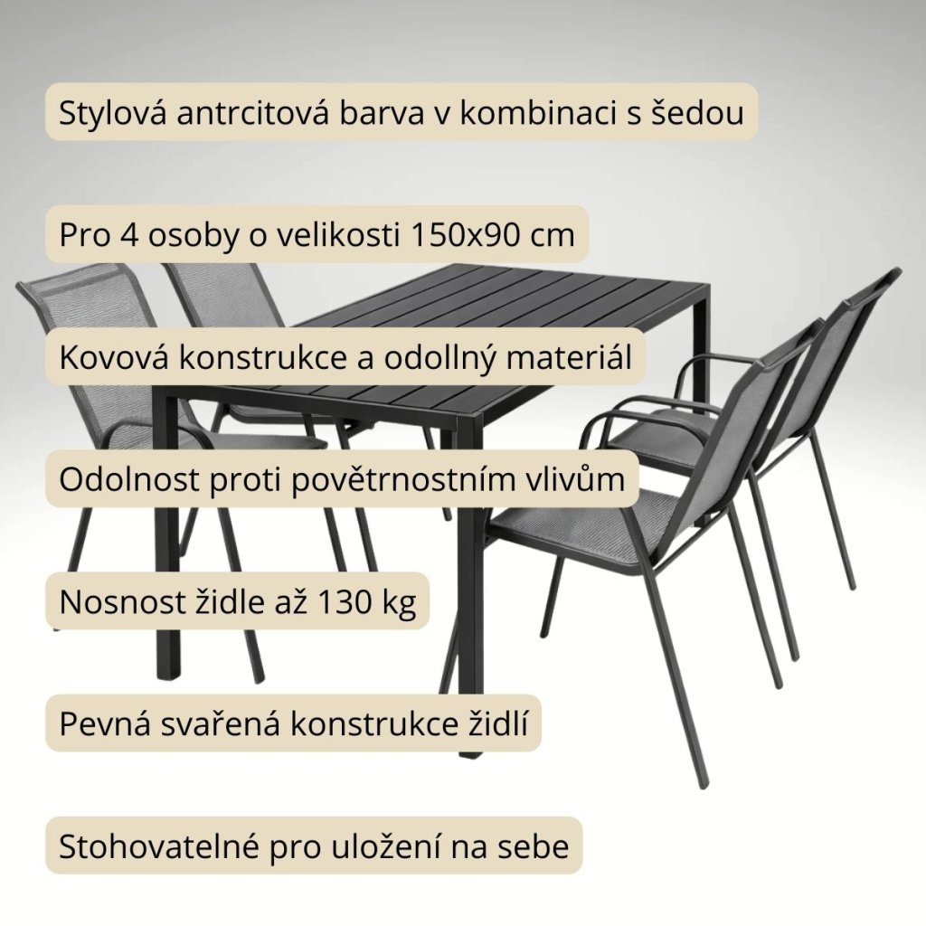 Díky rozměrům stolu 150x90 cm nabízí tento set ideální prostor pro 4 osoby, což je ideální pro menší rodinné oslavy, grilování nebo klidné posezení s přáteli. Stohovatelné židle vám umožní snadno uskladnit nábytek, pokud zrovna nepotřebujete místo. Tento praktický prvek vám šetří prostor a usnadní udržování pořádku na vaší terase nebo balkonu. Set je tak vhodný nejen pro menší prostory, ale i pro ty, kteří preferují flexibilitu a praktické řešení.