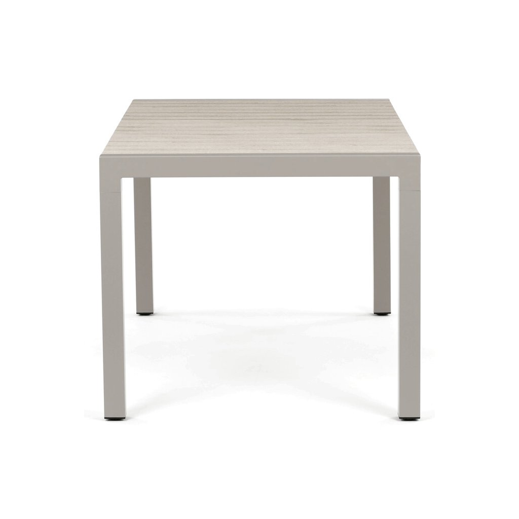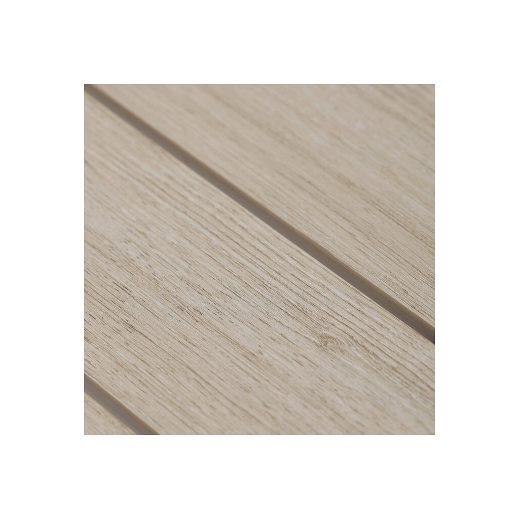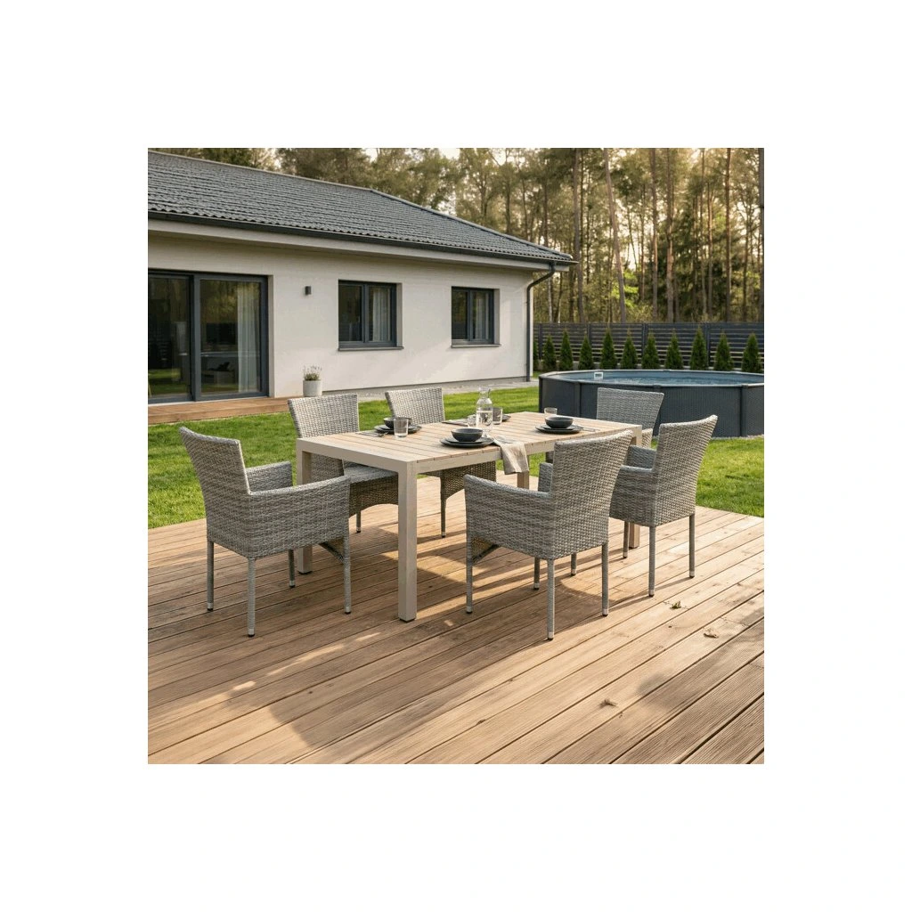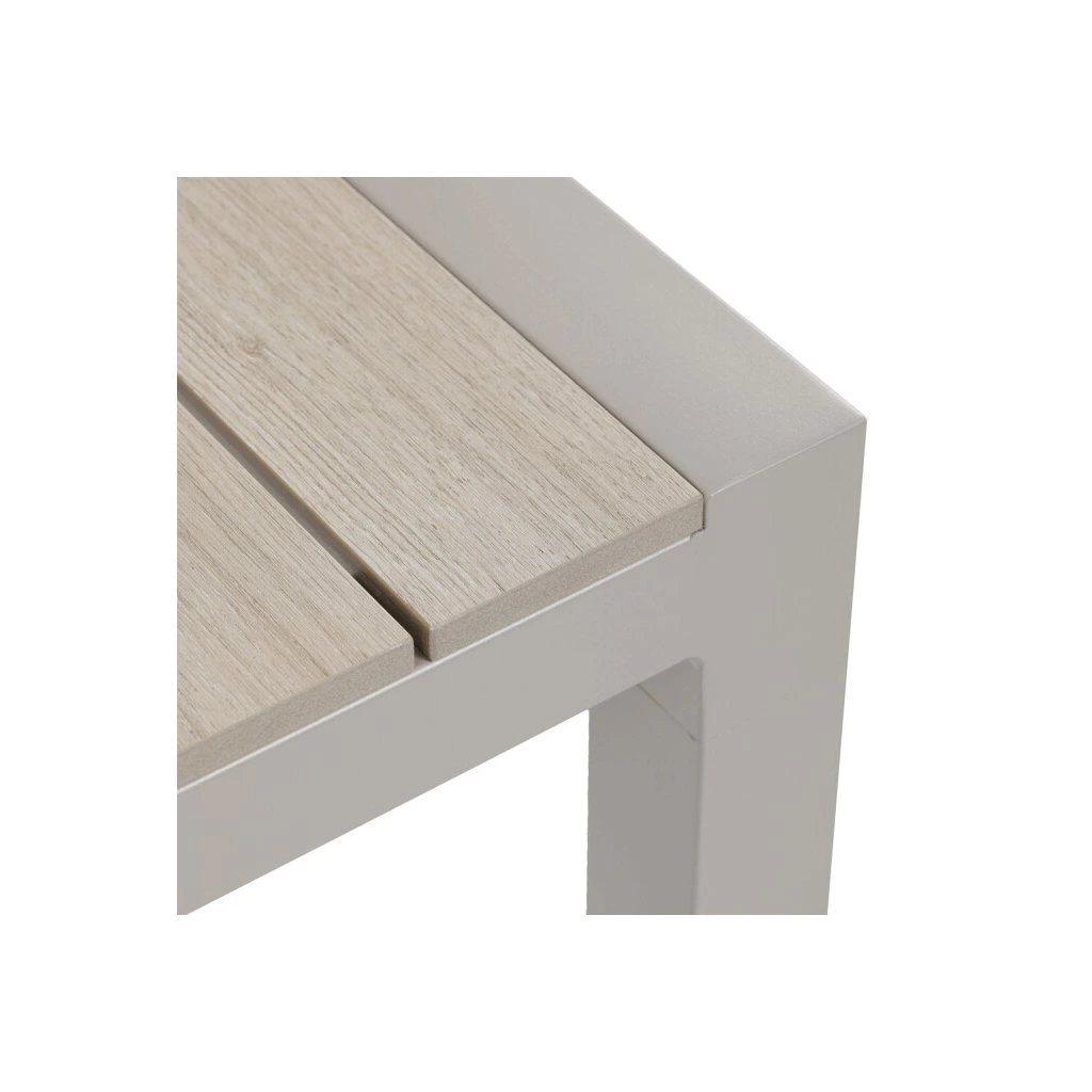 Zahradní stůl o rozměrech 160x90x75 cm kombinuje pevnou hliníkovou konstrukci v barvě cashmere s odolnou deskou z polywoodu v dekoru dubu, která je navržena pro dlouhou životnost a snadnou údržbu. Deska s přírodním vzhledem dřeva dodává stolku nadčasový design vhodný do různých venkovních prostor. Robustní nohy z hliníku zajišťují stabilitu a odolnost vůči povětrnostním vlivům, což umožňuje využití stolu na zahradě či terase po celý rok. Povrchová úprava konstrukce je matná a hladká, což přispívá k elegantnímu vzhledu a snadnému čištění. Stůl je ideální volbou pro rodinné posezení i venkovní stolování díky svým praktickým rozměrům a kvalitnímu provedení.