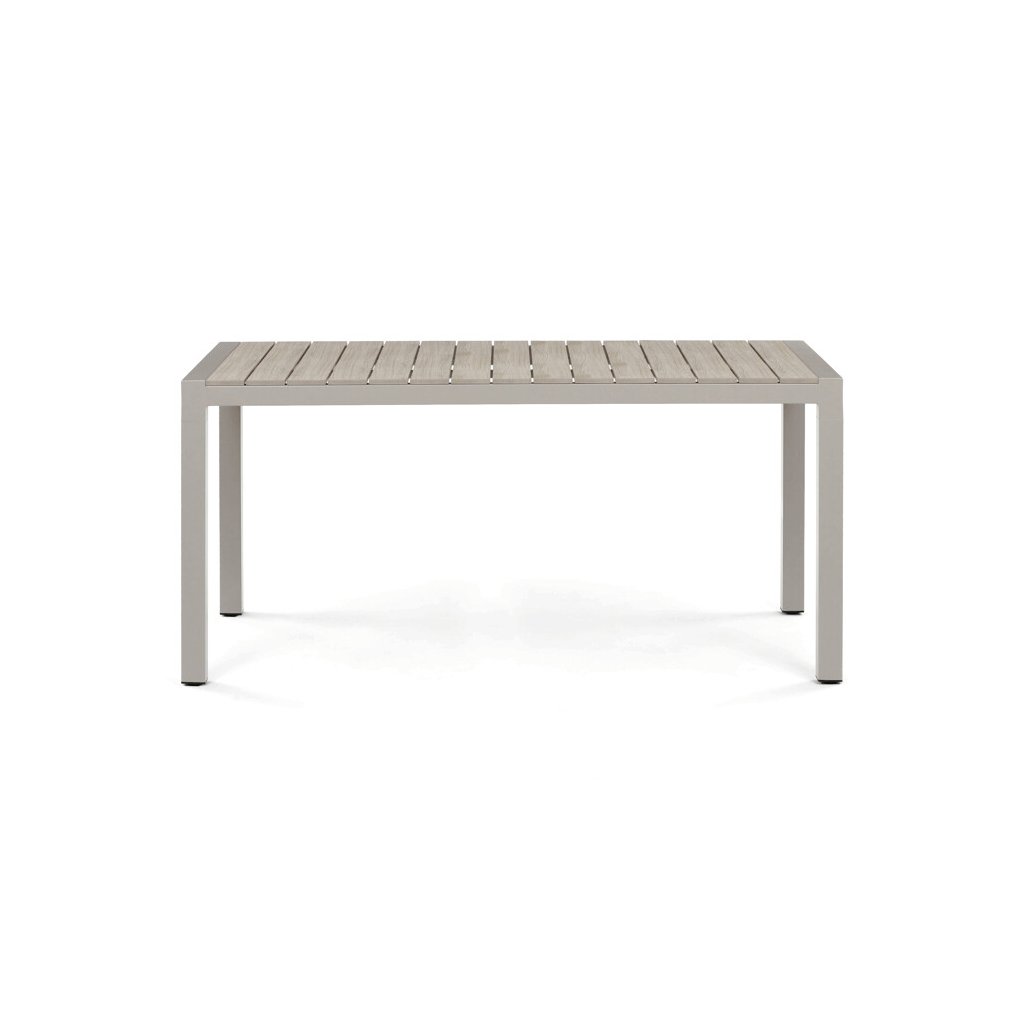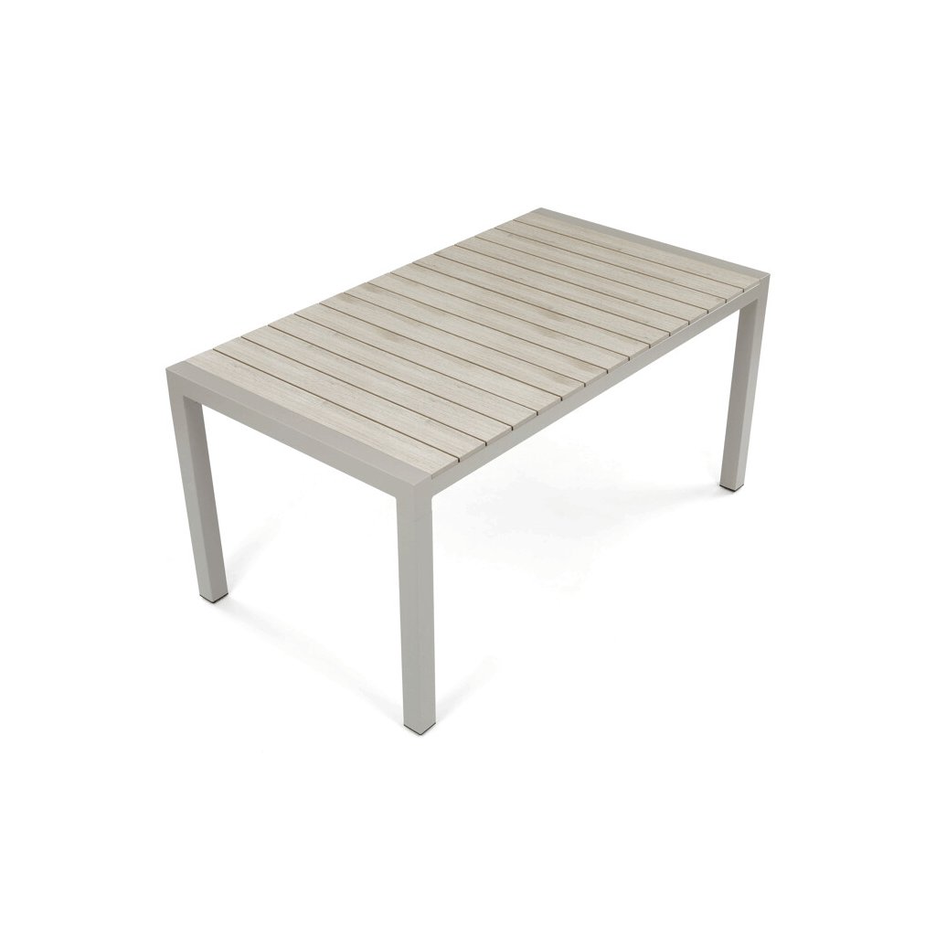 Zahradní stůl 162x90cm, hliník, polywood, béžová. Zahradní stůl o rozměrech 160x90x75 cm kombinuje pevnou hliníkovou konstrukci v barvě cashmere s odolnou deskou z polywoodu v dekoru dubu, která je na...