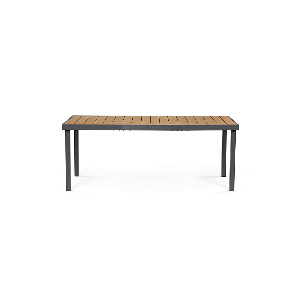 Zahradní stůl 190x90cm, hliník, polywood, šedá. Zahradní stůl o rozměrech 190x90 cm kombinuje pevnou hliníkovou konstrukci v šedém odstínu s vysoce odolnou deskou z polywoodu v přírodních barvách, k...
