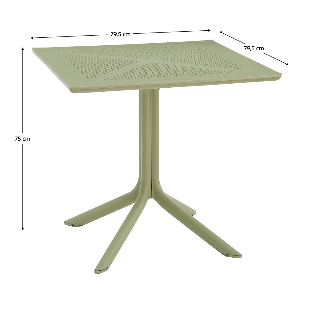 79,5;79,5;74,5;Materiál: plast Barva: černá Rozměry (ŠxHxV): 79,5x79,5x74,5 cm Nosnost: 50 kg Hmotnost: 10,5 kg Jednoduchý Praktický Na nožičkách Jídelní/zahradní stůl Vhodný do...