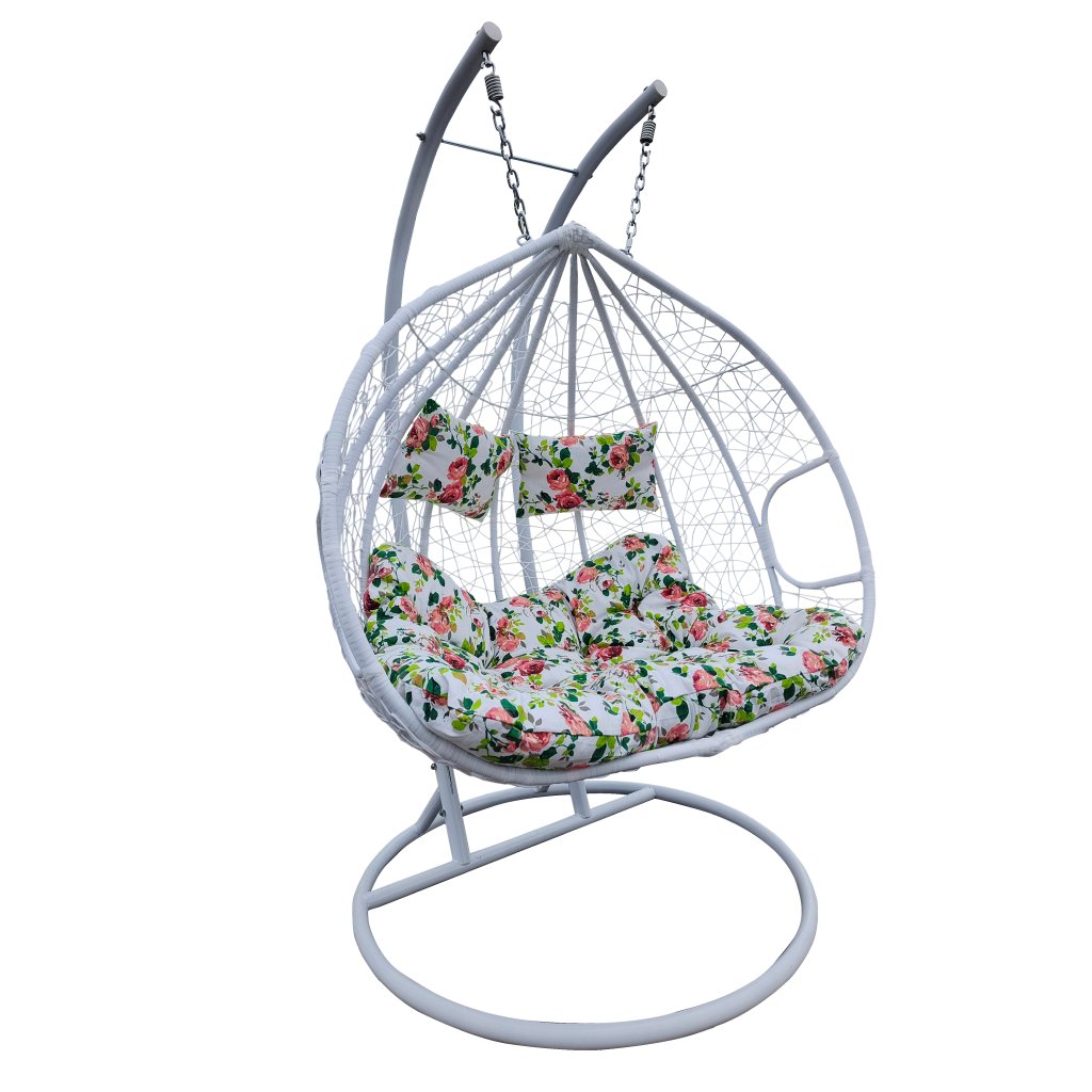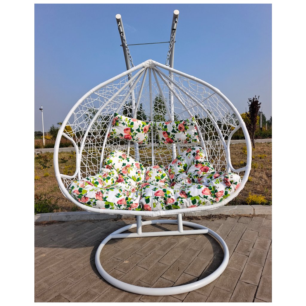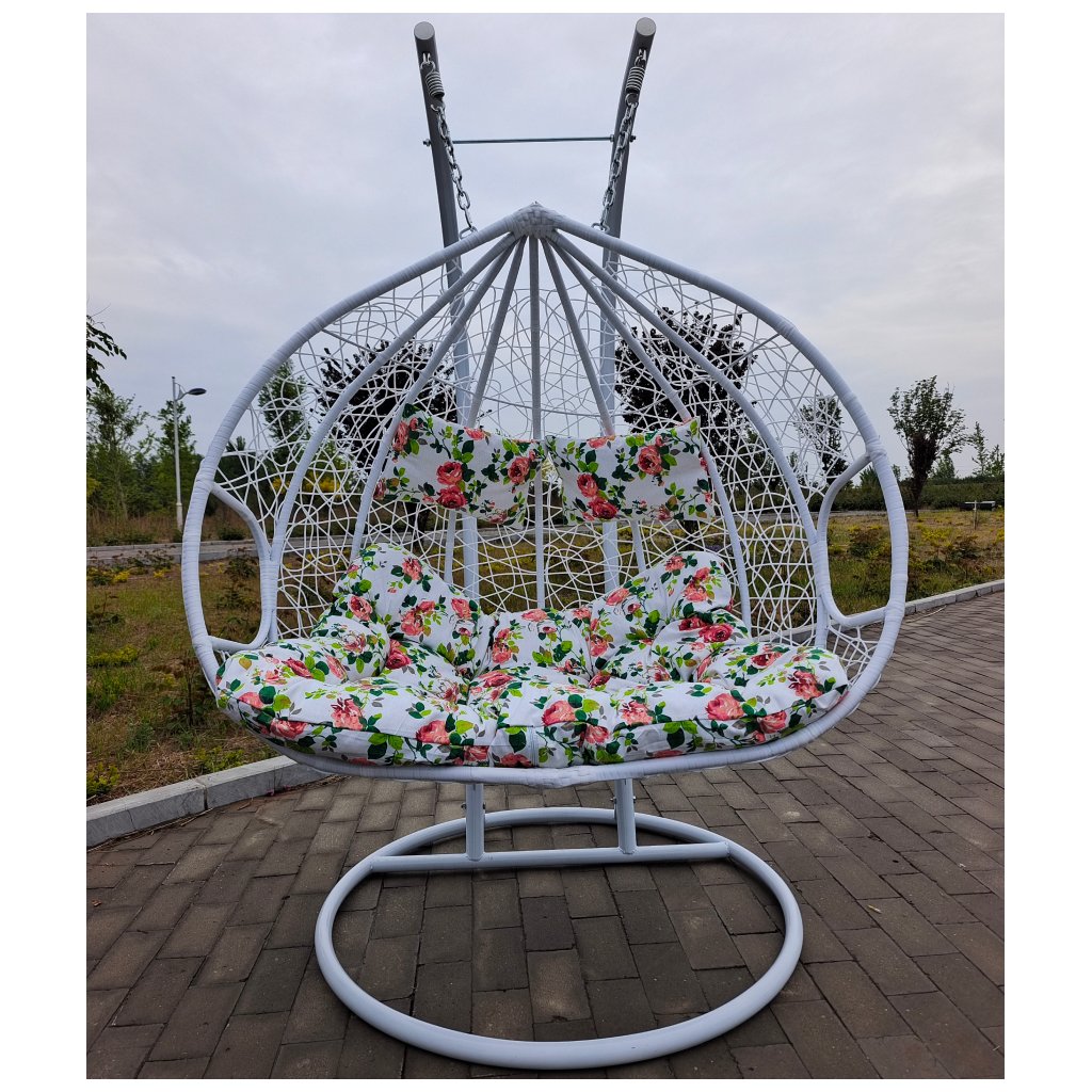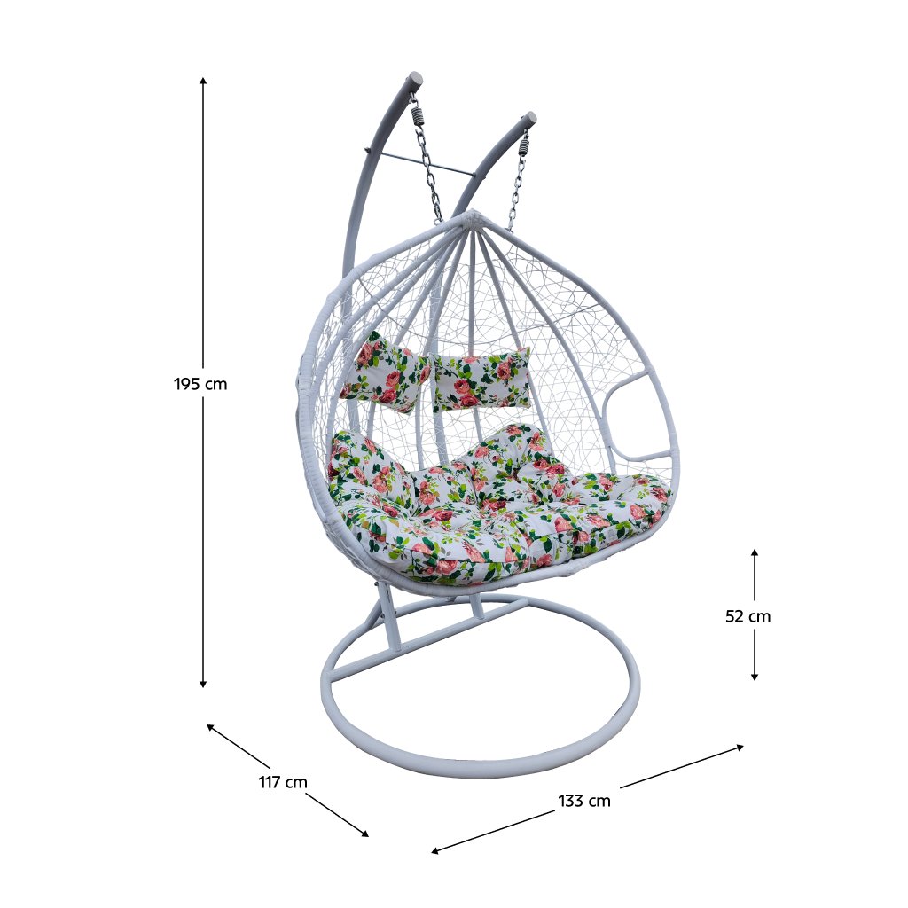 Závěsné dvojkřeslo, bílá/vzor květiny, DALVEA 2 NEW