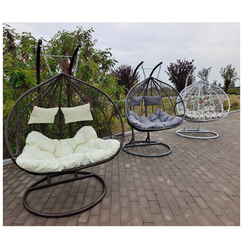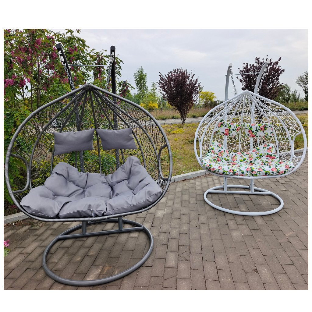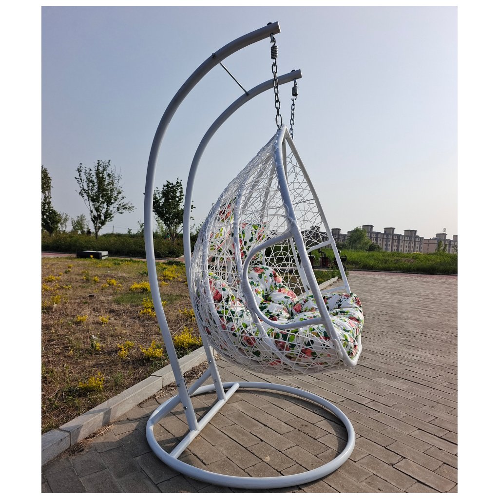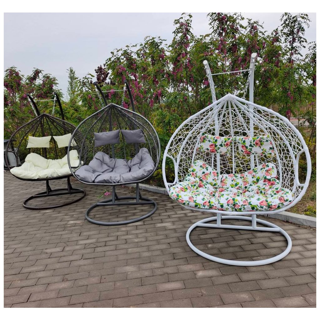 Závěsné dvojkřeslo, bílá/vzor květiny, DALVEA 2 NEW