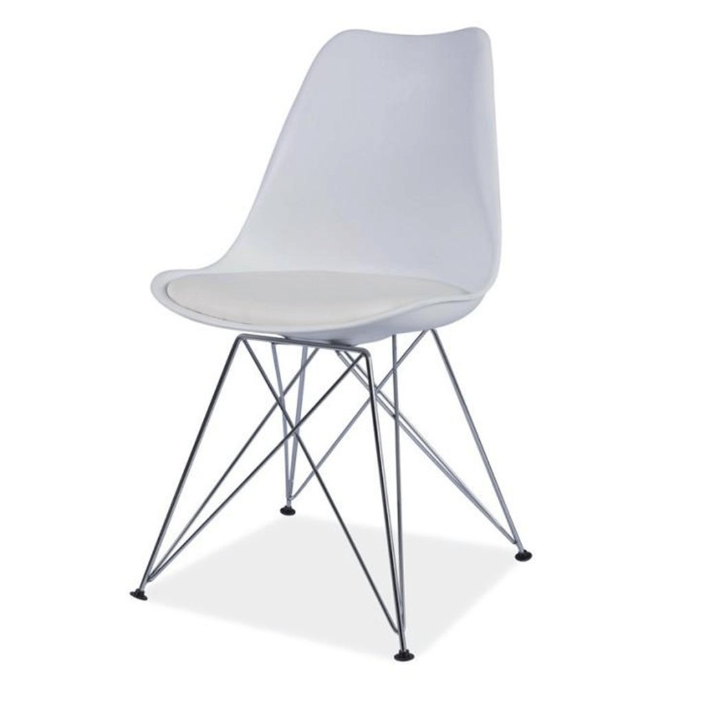 moderní jídelní židle s měkkou vložkou na sezení,provedení: PP + PU bílá a chromové nohy,