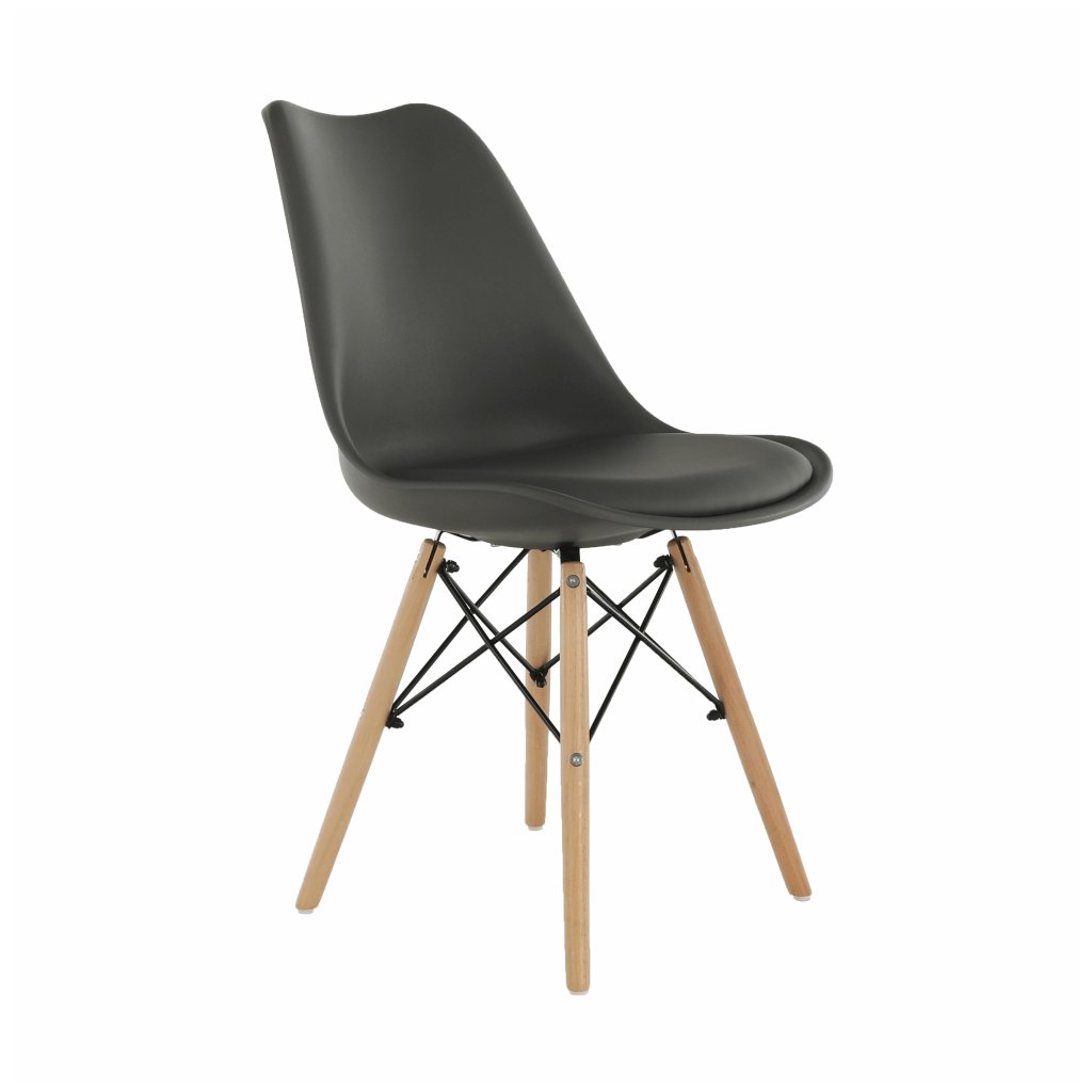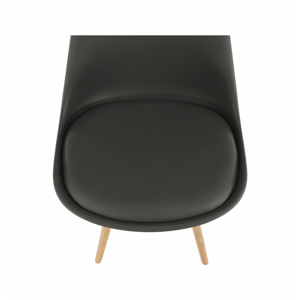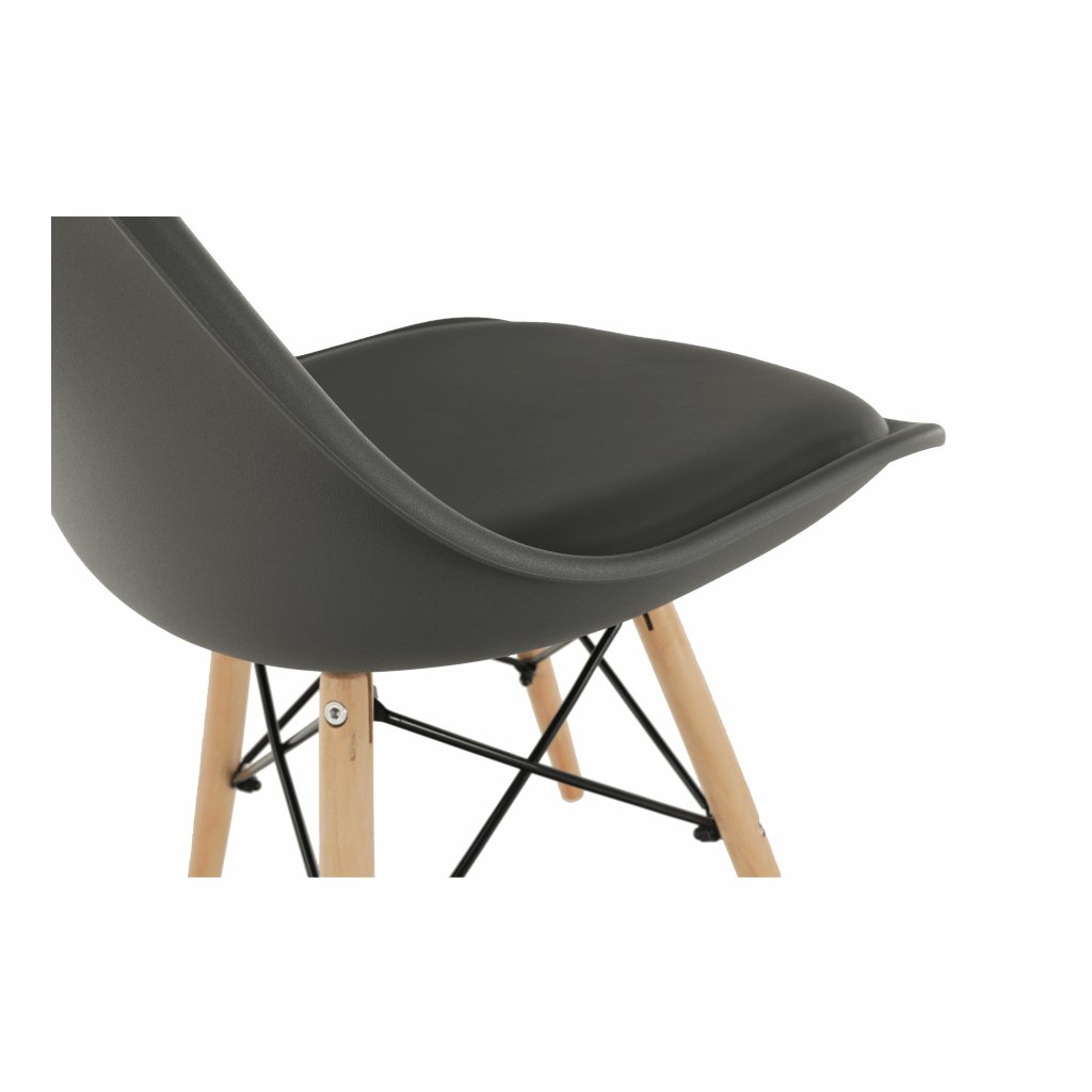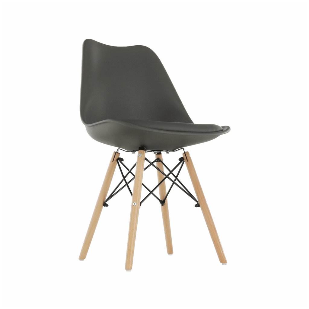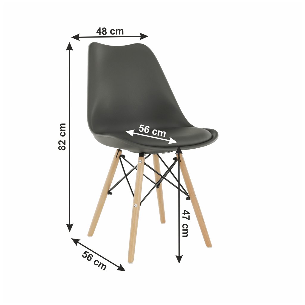 Jídelní židle KEMAL NEW, v tmavě šedé barvě, jejíž sedák je čalouněn ekokůží, dřevěné nožky v dekoru buk, doplněné kovovými výztuhami. Skvěle se hodí do interiéru ve skandinávském, ale také industriálním stylu.
