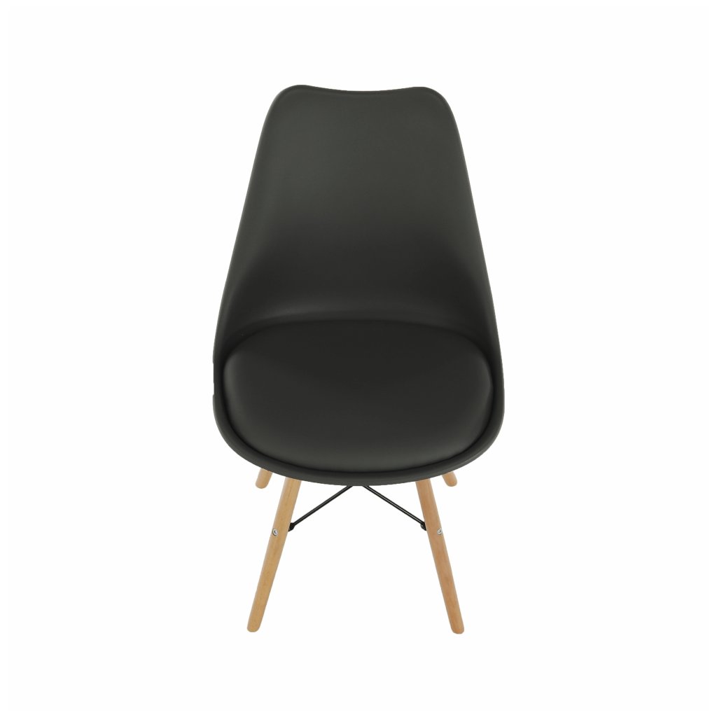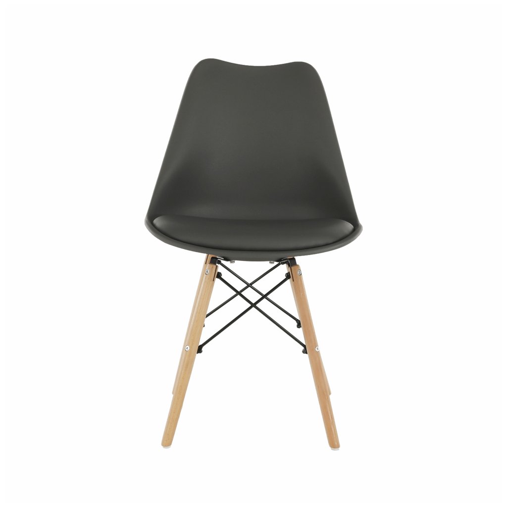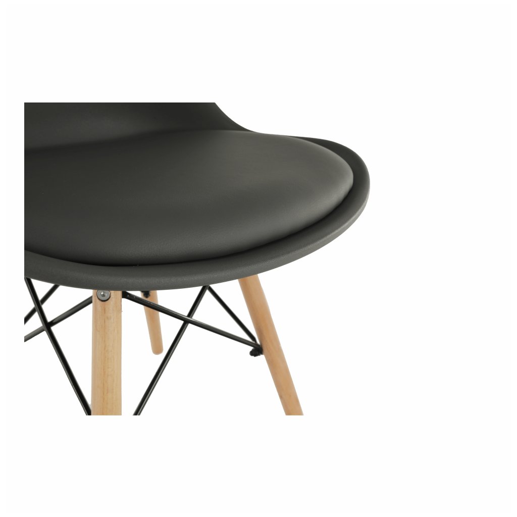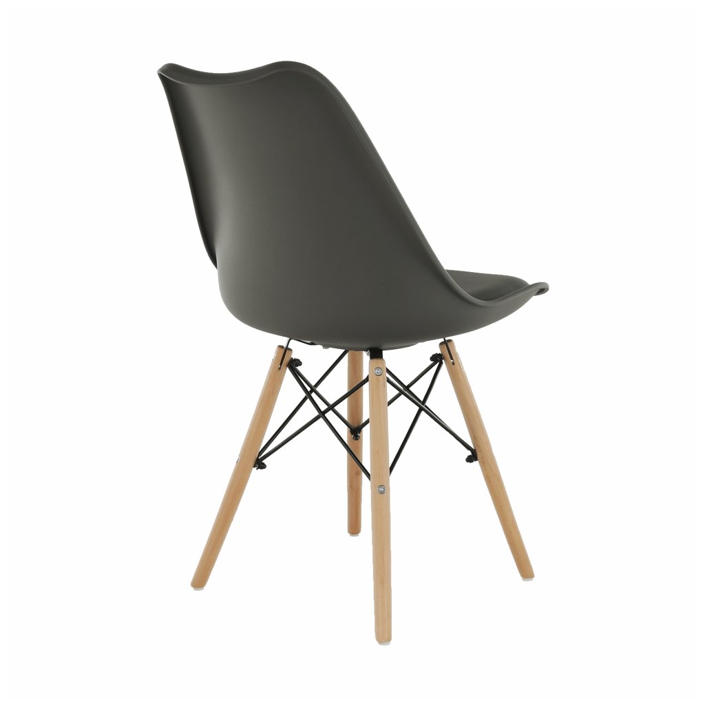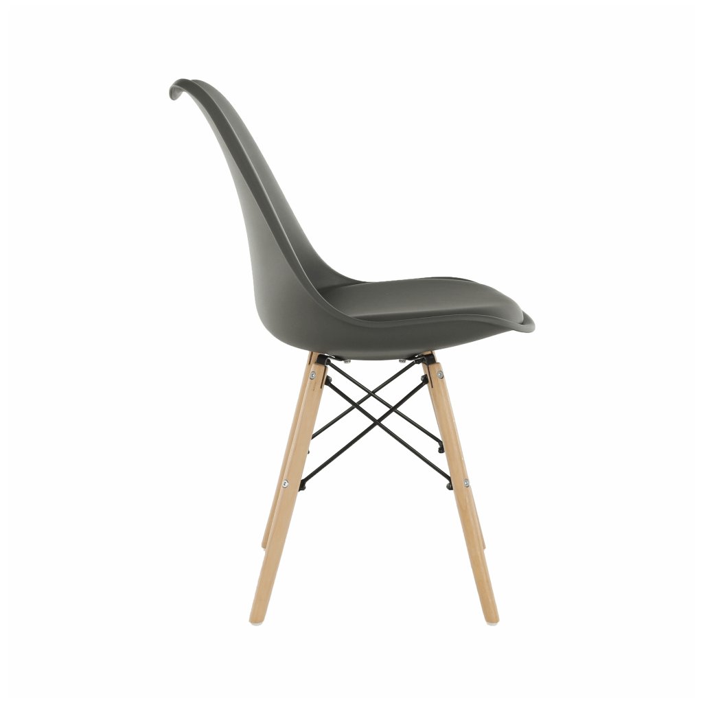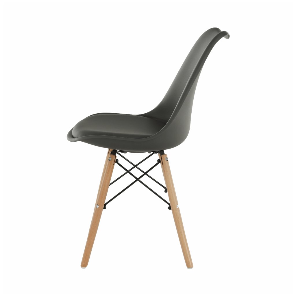Jídelní židle KEMAL NEW, v tmavě šedé barvě, jejíž sedák je čalouněn ekokůží, dřevěné nožky v dekoru buk, doplněné kovovými výztuhami. Skvěle se hodí do interiéru ve skandinávském, ale také industriálním stylu.