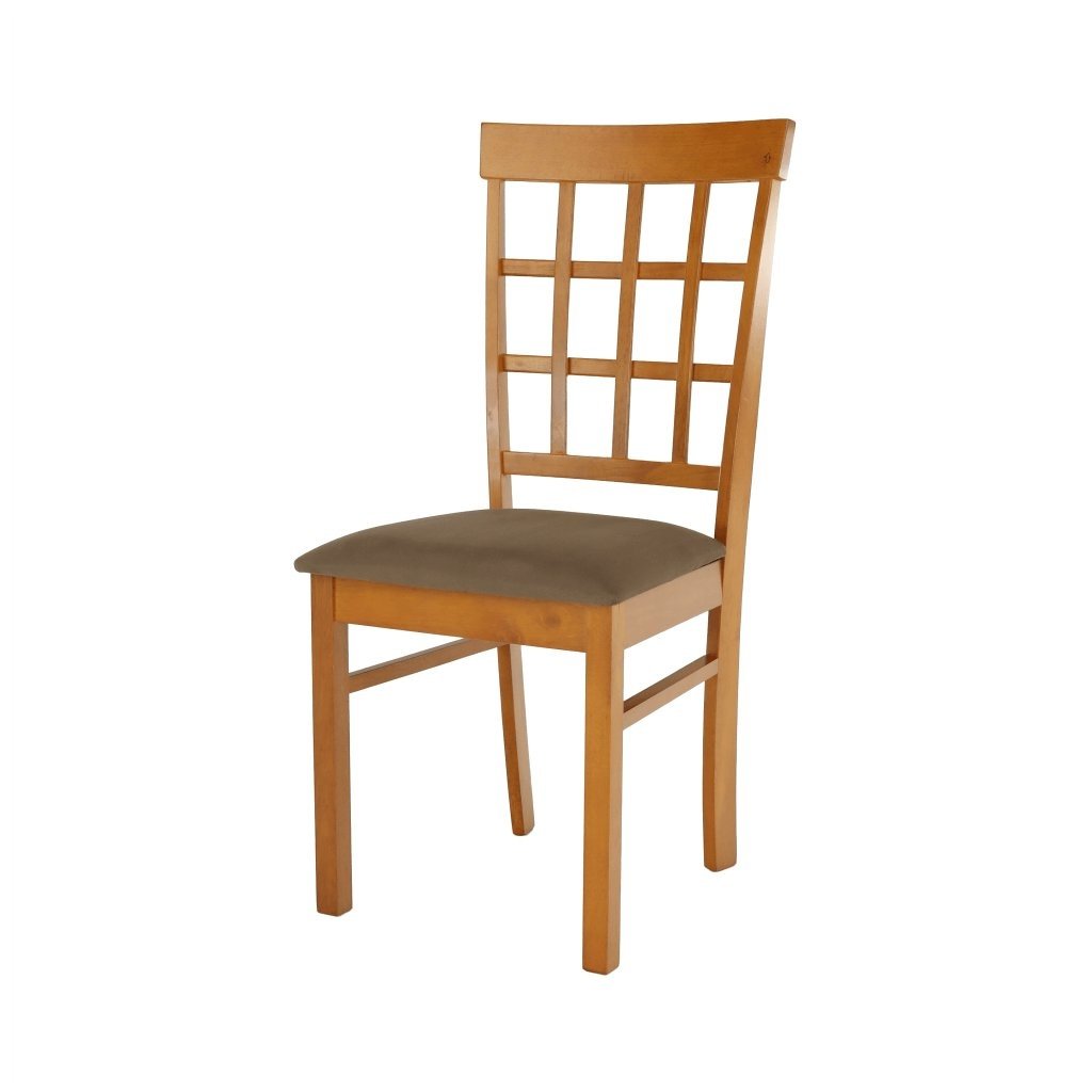 židle, materiál: dřevo - třešeň + látka slabě hnědá, rozměry (ŠxHxV): 44x48x90 cm. Dodáváno v demontu. Doporučujeme kombinovat se stolem ROSPAN.